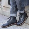 Botín de hombre. Piel Napa Grass Cuero WATERPROOF. Cierre de cordones. Forro interior de Gore-Tex®. Plantilla anatómica extraíble. Suela de caucho natural, flexible y resistente. Altura caña: 14 cm. Altura tacón: 4.5 cm. 100% Hecho en España.