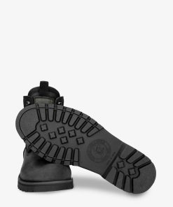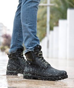 Botín de hombre. Piel Nobuck Negro WATERPROOF. Cierre de cordones. Forro interior de Gore-Tex®. Plantilla anatómica extraíble. Suela de caucho natural, flexible y resistente. Altura caña: 14 cm. Altura tacón: 4 cm. 100% Hecho en España.