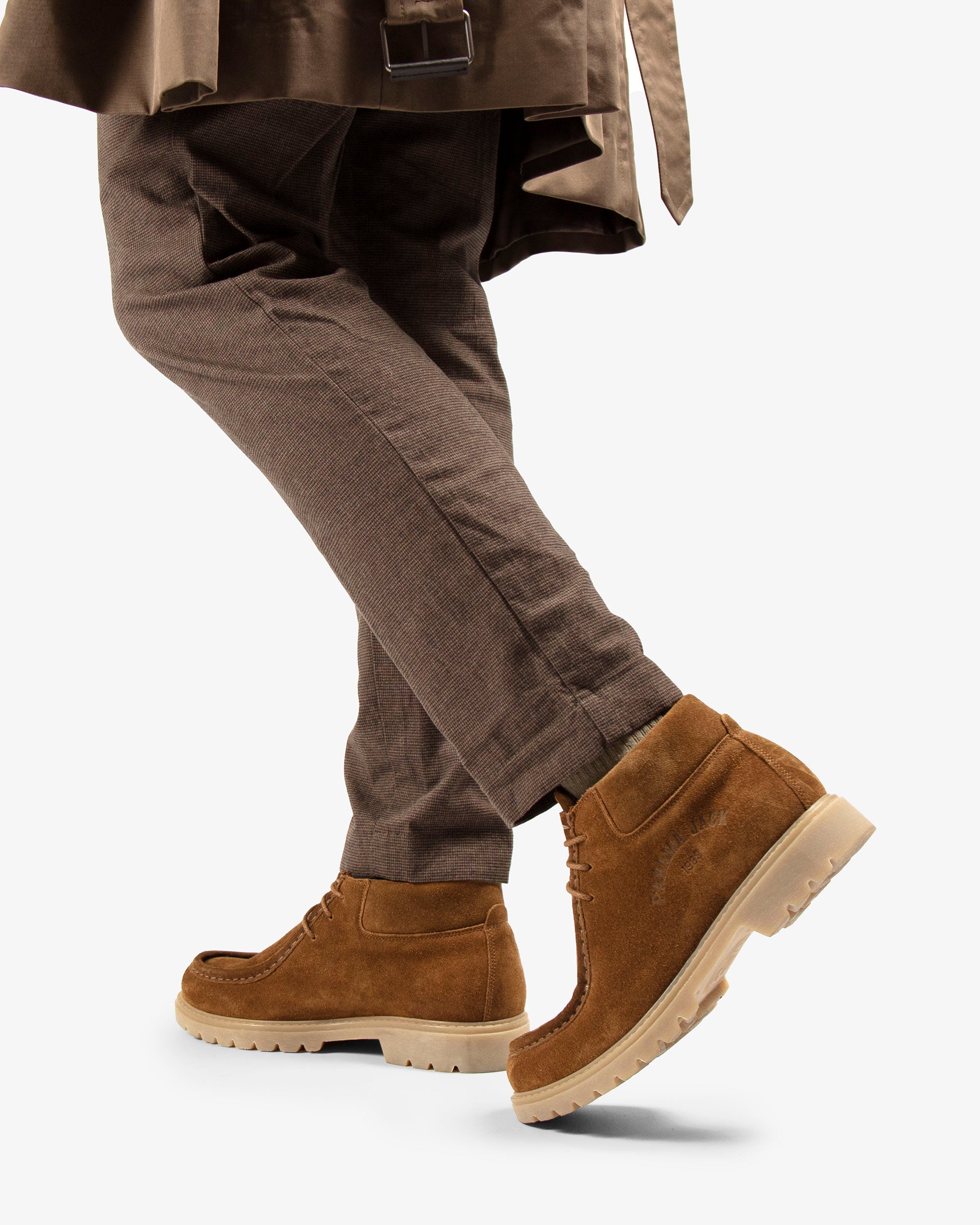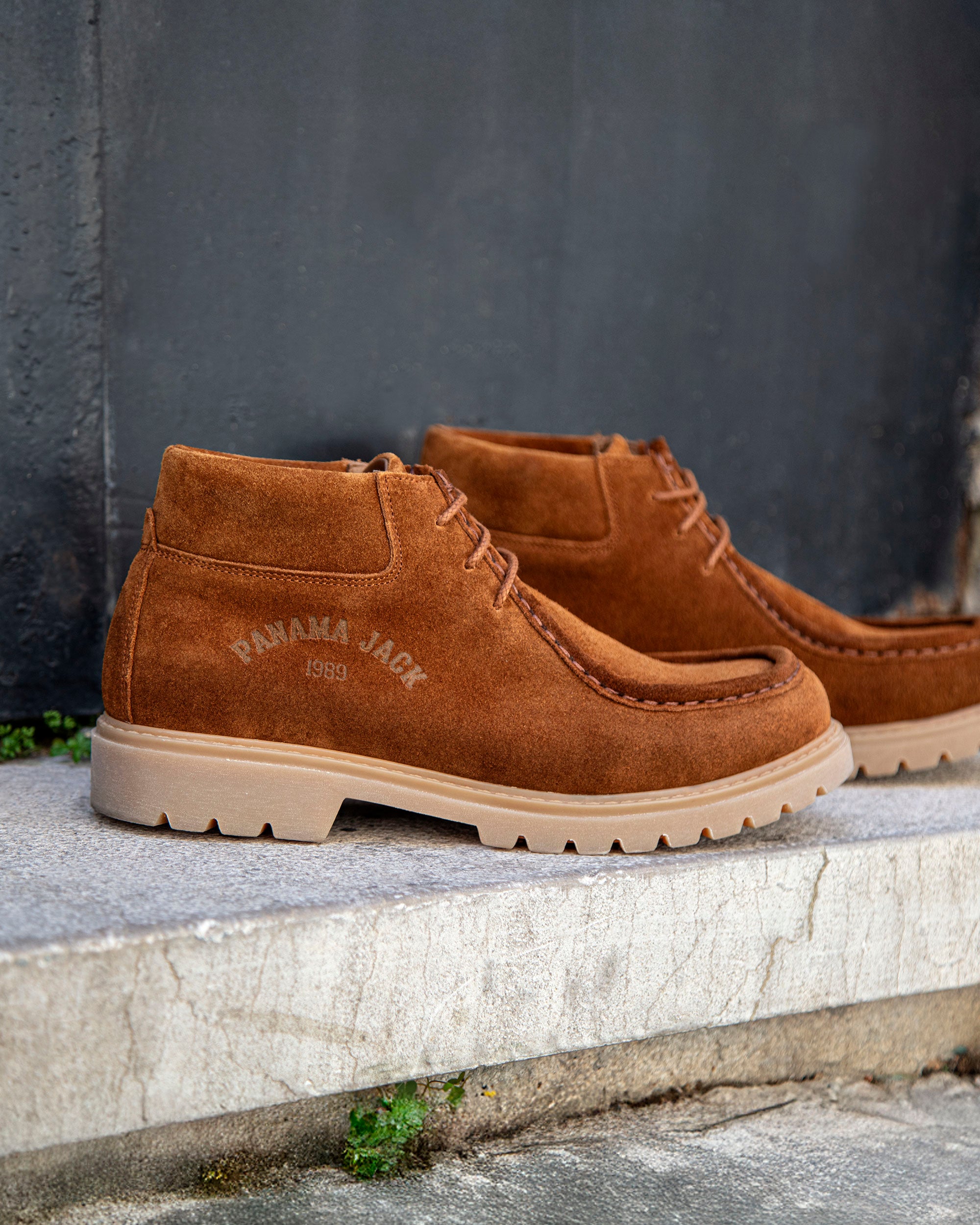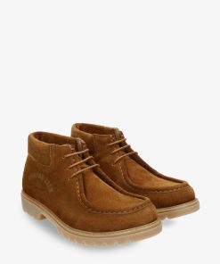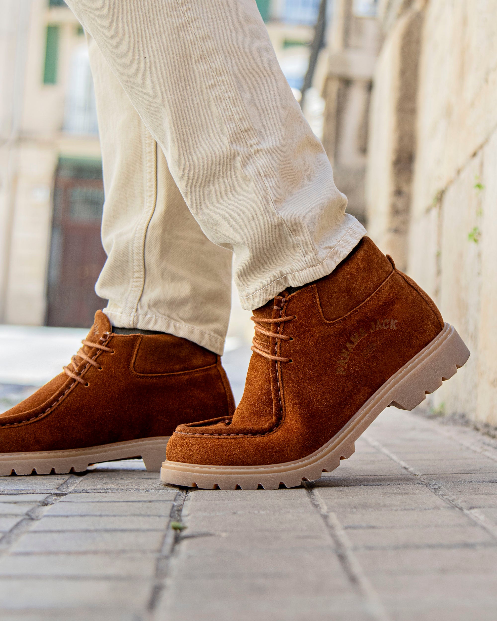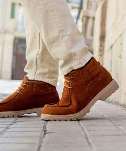 Botín de hombre. Piel Velour Cuero. Cierre de cordones. Forro interior de Piel. Plantilla anatómica extraíble. Suela de caucho natural, flexible y resistente. Altura caña: 9 cm. Altura tacón: 4.5 cm. 100% Hecho en España.
