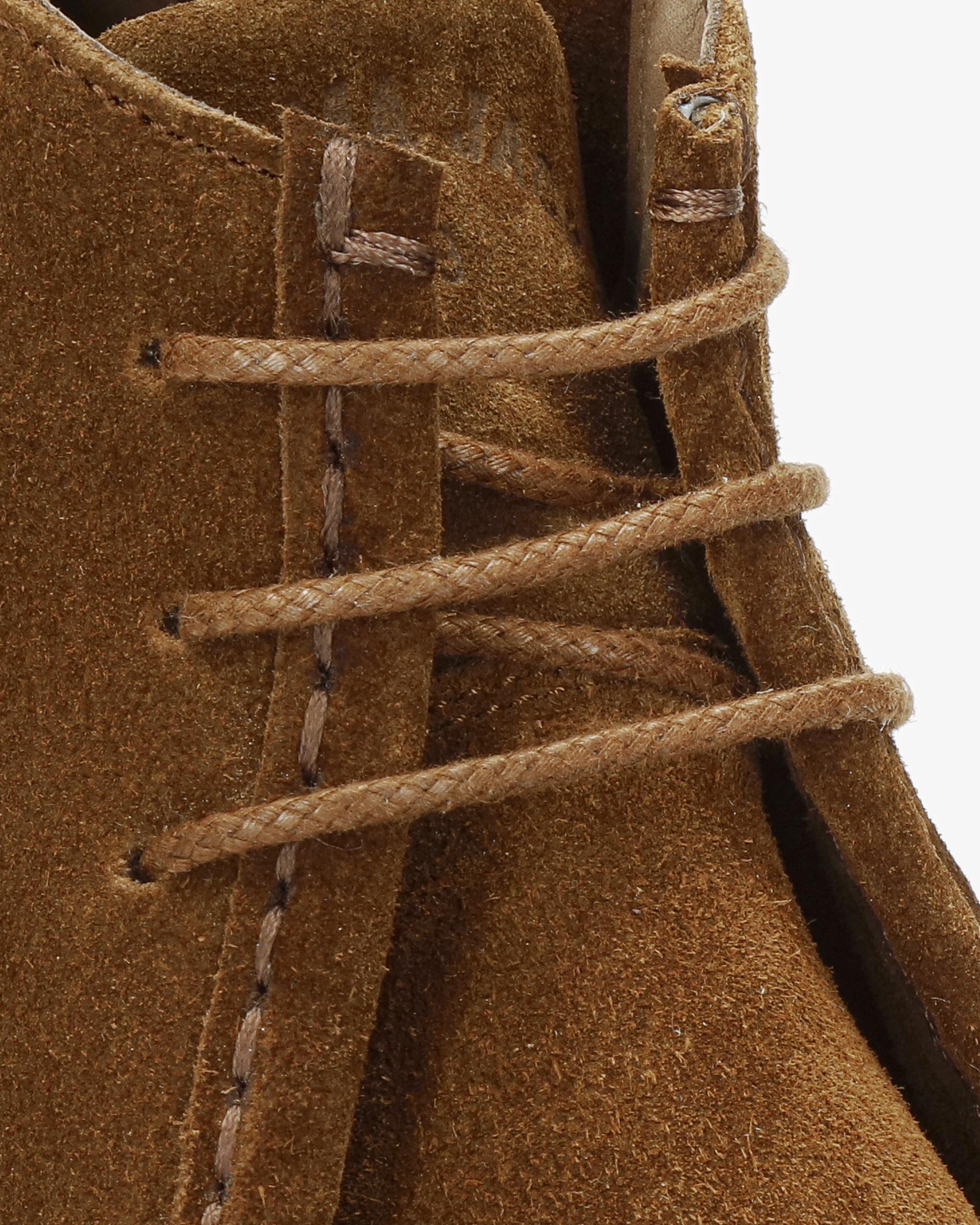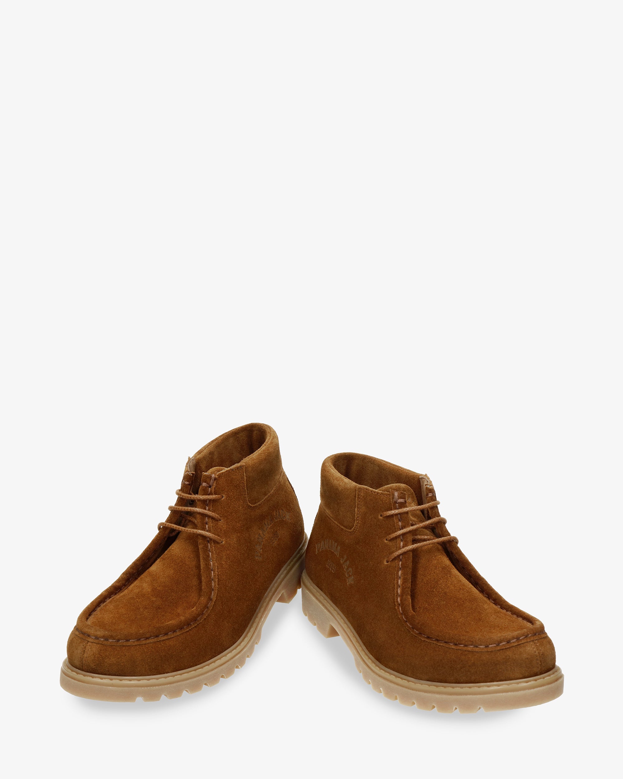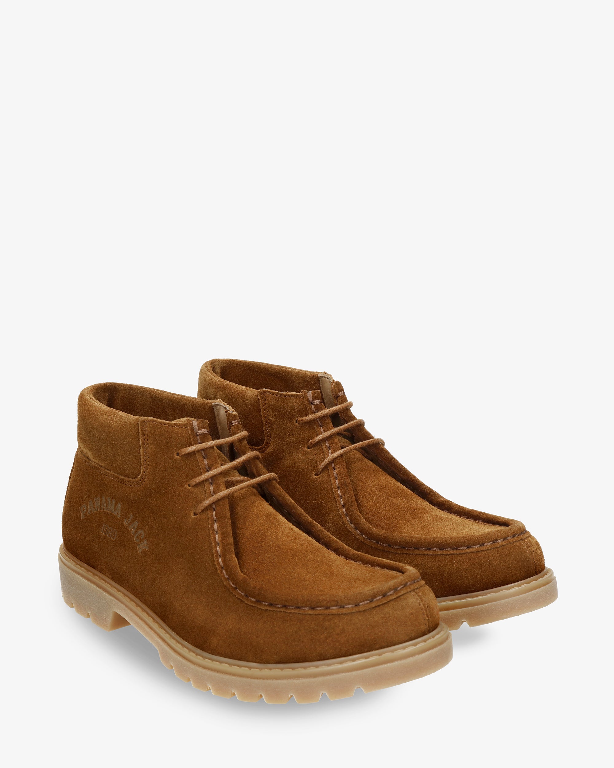 Botín de hombre. Piel Velour Cuero. Cierre de cordones. Forro interior de Piel. Plantilla anatómica extraíble. Suela de caucho natural, flexible y resistente. Altura caña: 9 cm. Altura tacón: 4.5 cm. 100% Hecho en España.