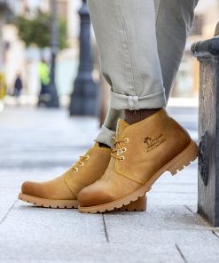 Botín de hombre. Piel Napa Vintage WATERPROOF. Cierre de cordones. Forro interior de Piel. Plantilla anatómica extraíble. Suela de caucho natural, flexible y resistente. Altura caña: 10 cm. Altura tacón: 4 cm. 100% Hecho en España.