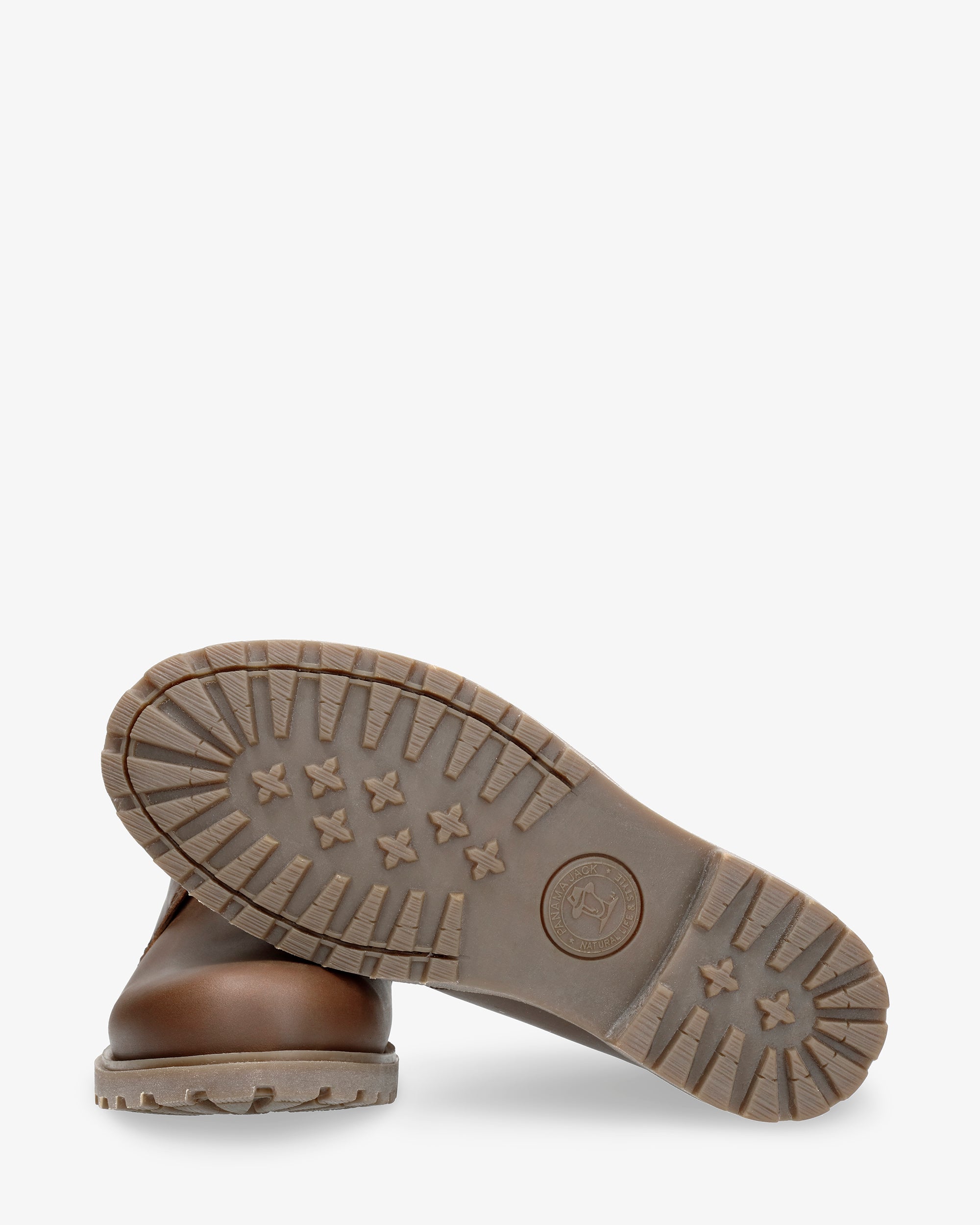 Botín de hombre. Piel Napa Grass Cuero WATERPROOF. Cierre de cordones. Forro interior de Piel. Plantilla anatómica extraíble. Suela de caucho natural, flexible y resistente. Altura caña: 10 cm. Altura tacón: 4 cm. 100% Hecho en España.