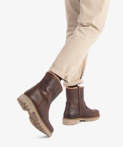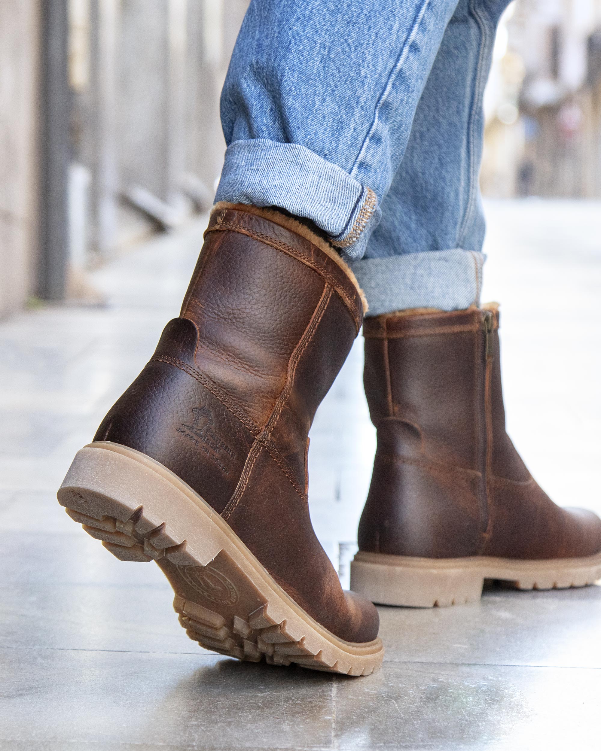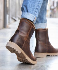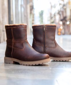 Bota de hombre. Piel Napa Cuero WATERPROOF. Cierre de cremallera. Forro interior de Pelo. Plantilla anatómica extraíble. Suela de caucho natural, flexible y resistente. Altura caña: 18 cm. Altura tacón: 4.5 cm. 100% Hecho en España.