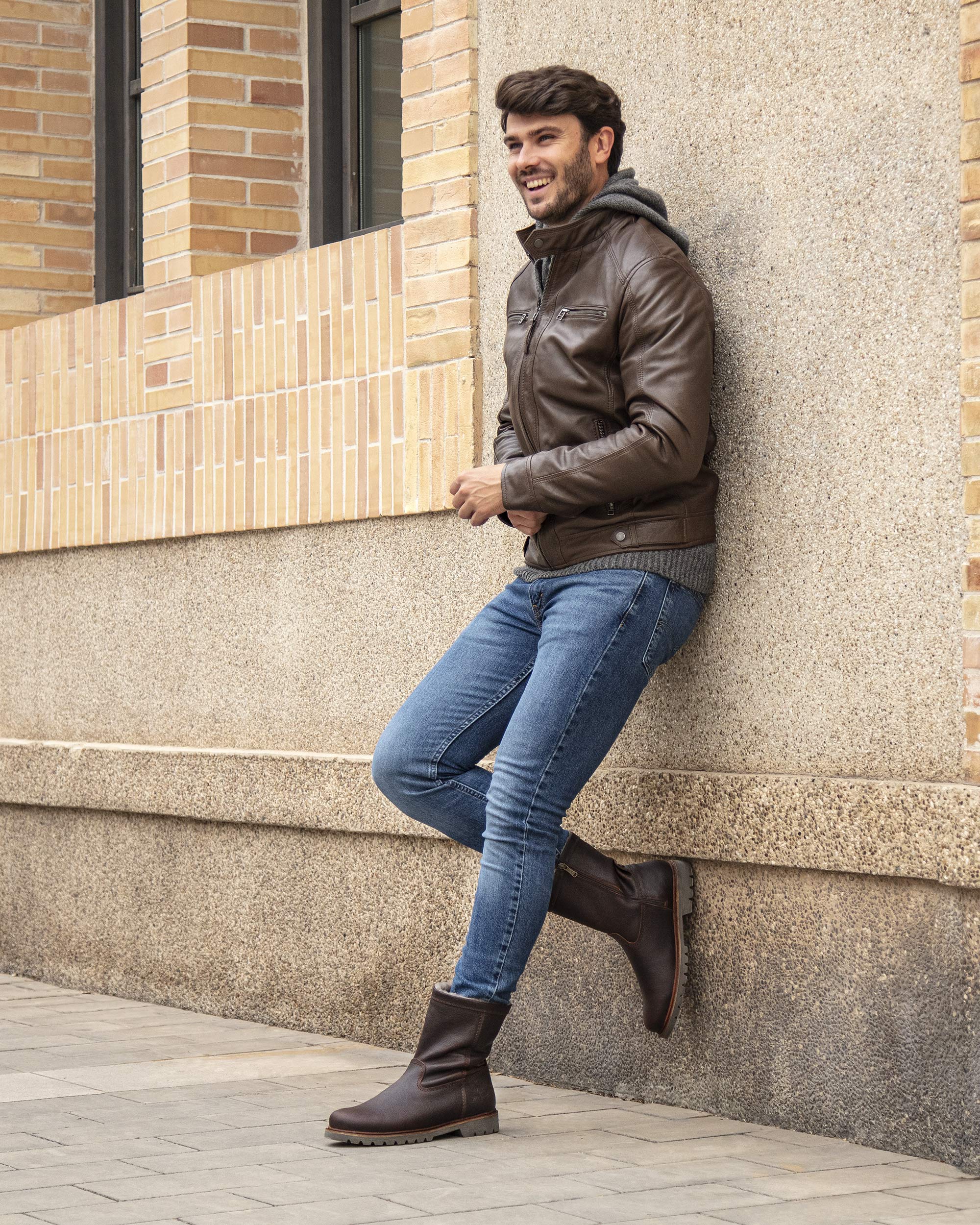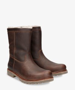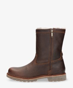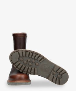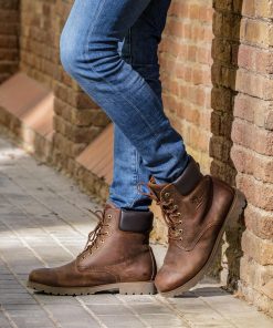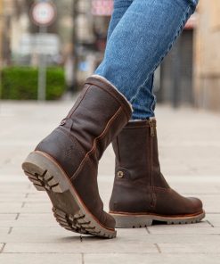 Bota de hombre. Piel Napa Grass Castaño WATERPROOF. Cierre de cremallera. Forro interior de Pelo natural. Plantilla anatómica extraíble. Suela de caucho natural, flexible y resistente. Altura caña: 21 cm. Altura tacón: 4 cm. 100% Hecho en España.
