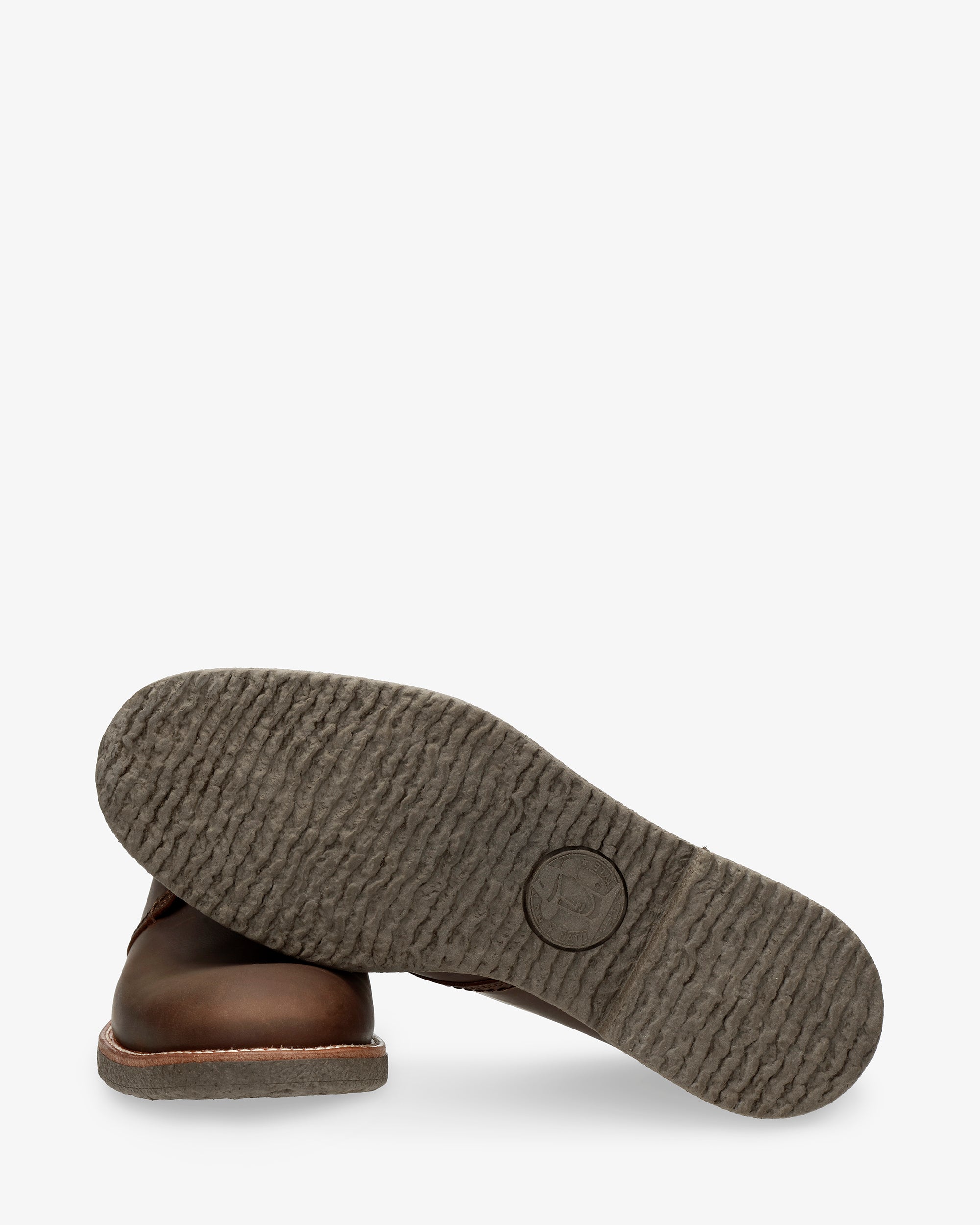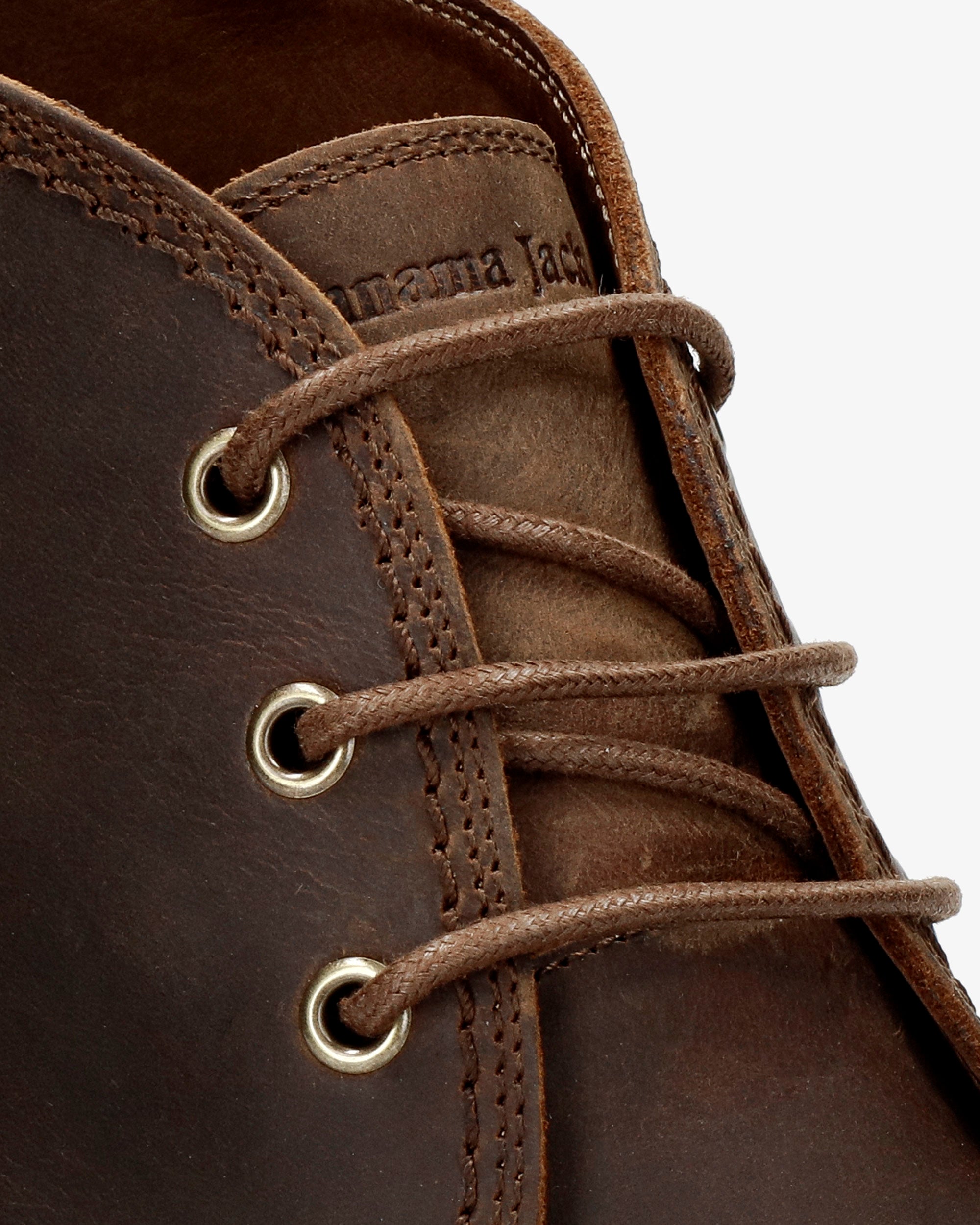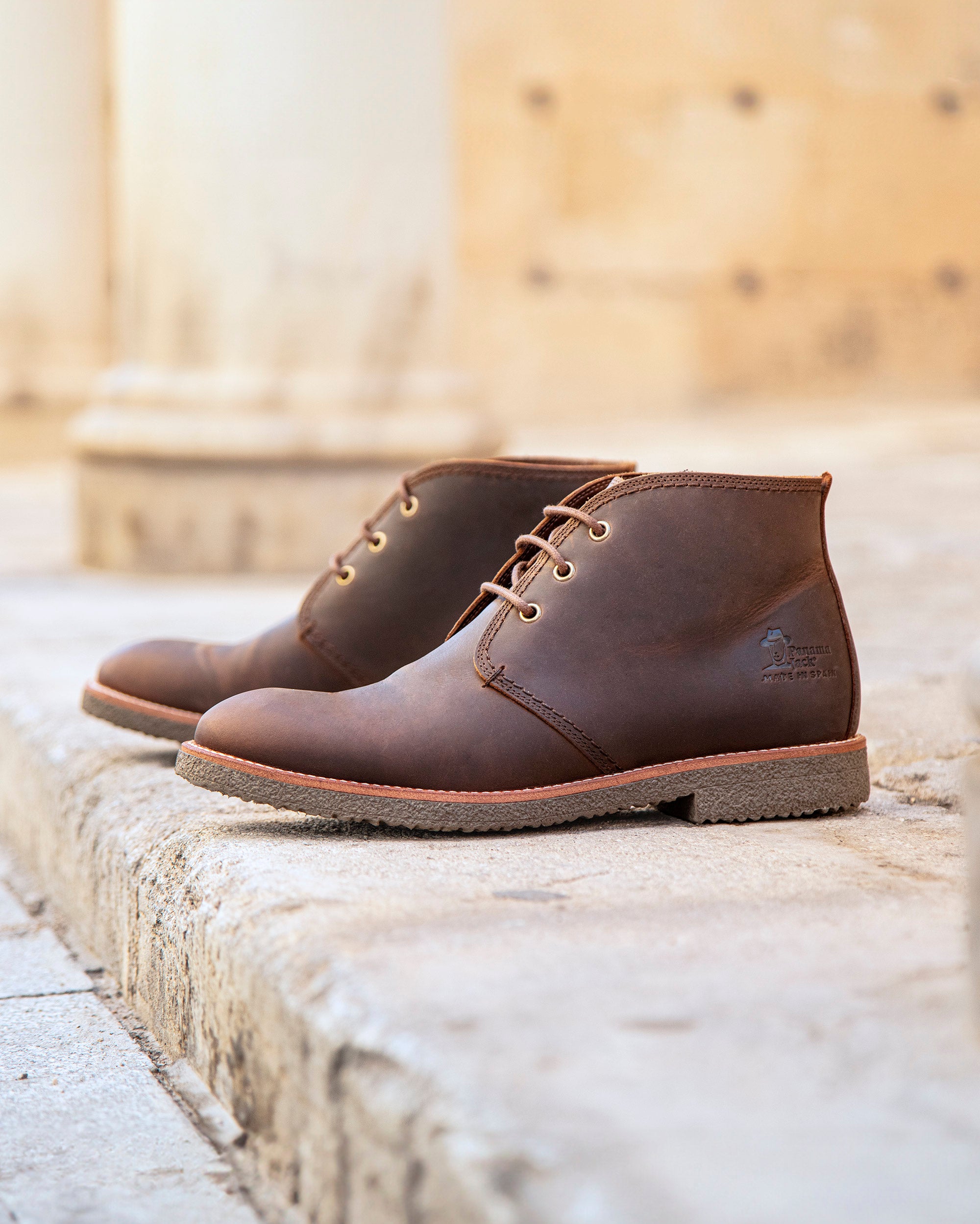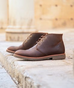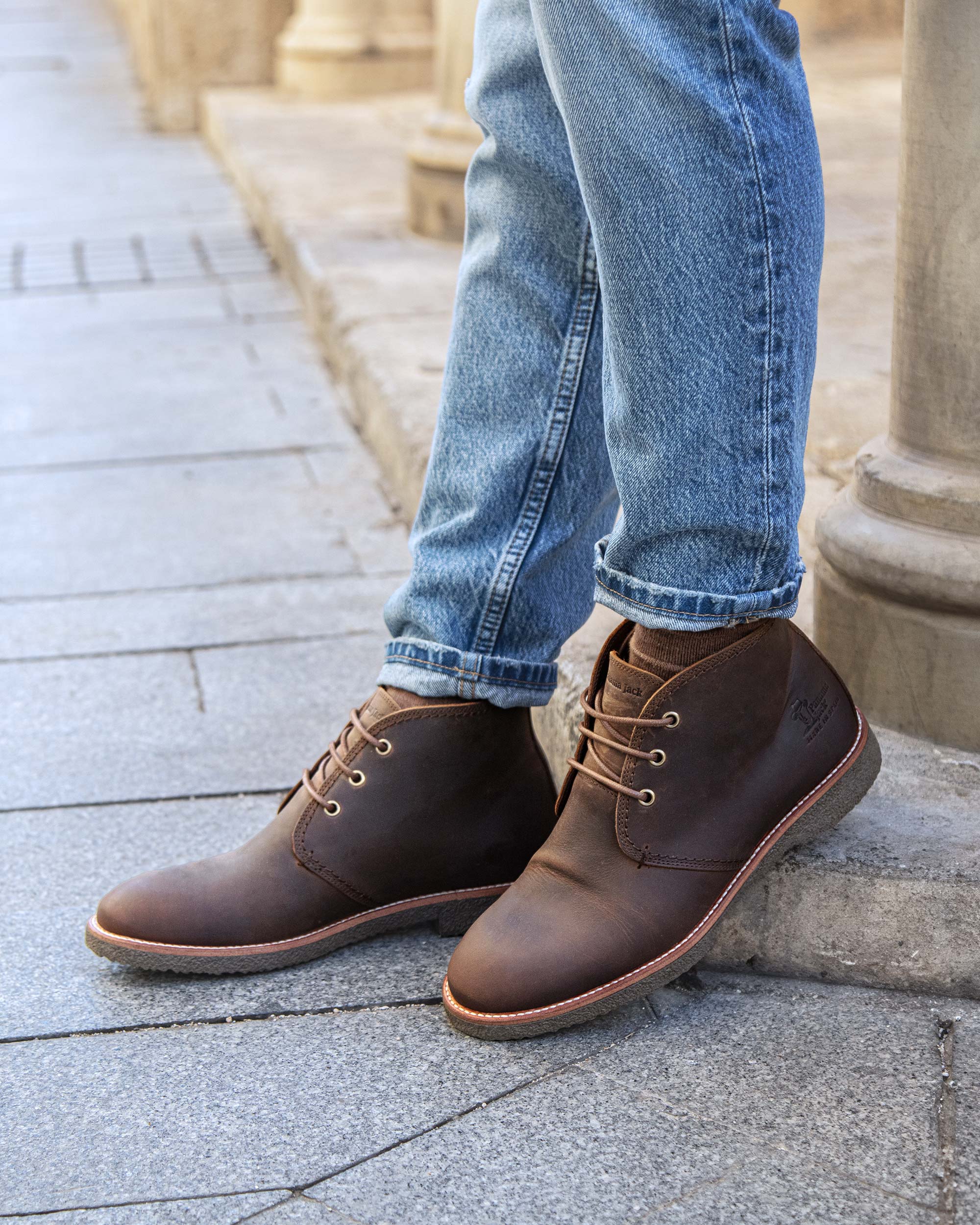 Botín de hombre. Piel Napa Grass Cuero WATERPROOF. Cierre de cordones. Forro interior de Piel. Plantilla anatómica extraíble. Suela de TPU, flexible y resistente. Altura caña: 10,5 cm. Altura tacón: 3 cm. 100% Hecho en España.