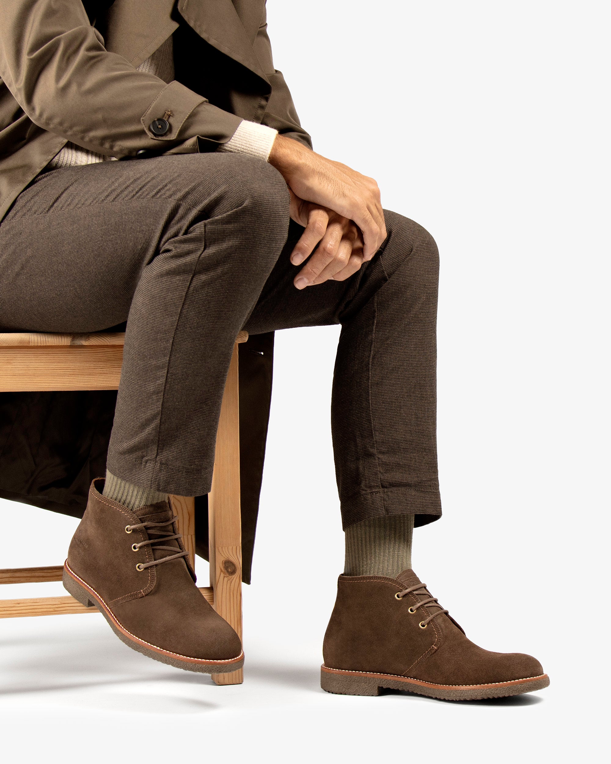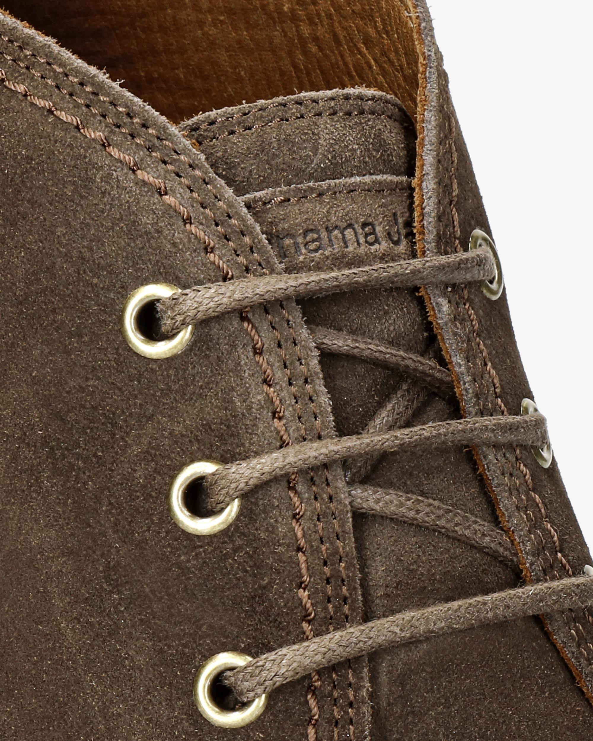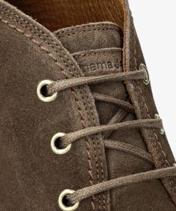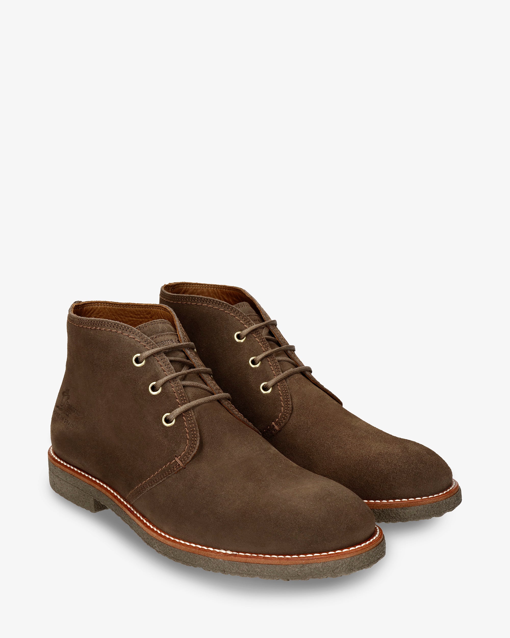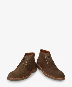 Botín de hombre. Piel Velour Humo. Cierre de cordones. Forro interior de Piel. Plantilla anatómica extraíble. Suela de TPU, flexible y resistente. Altura caña: 10,5 cm. Altura tacón: 3 cm. 100% Hecho en España.
