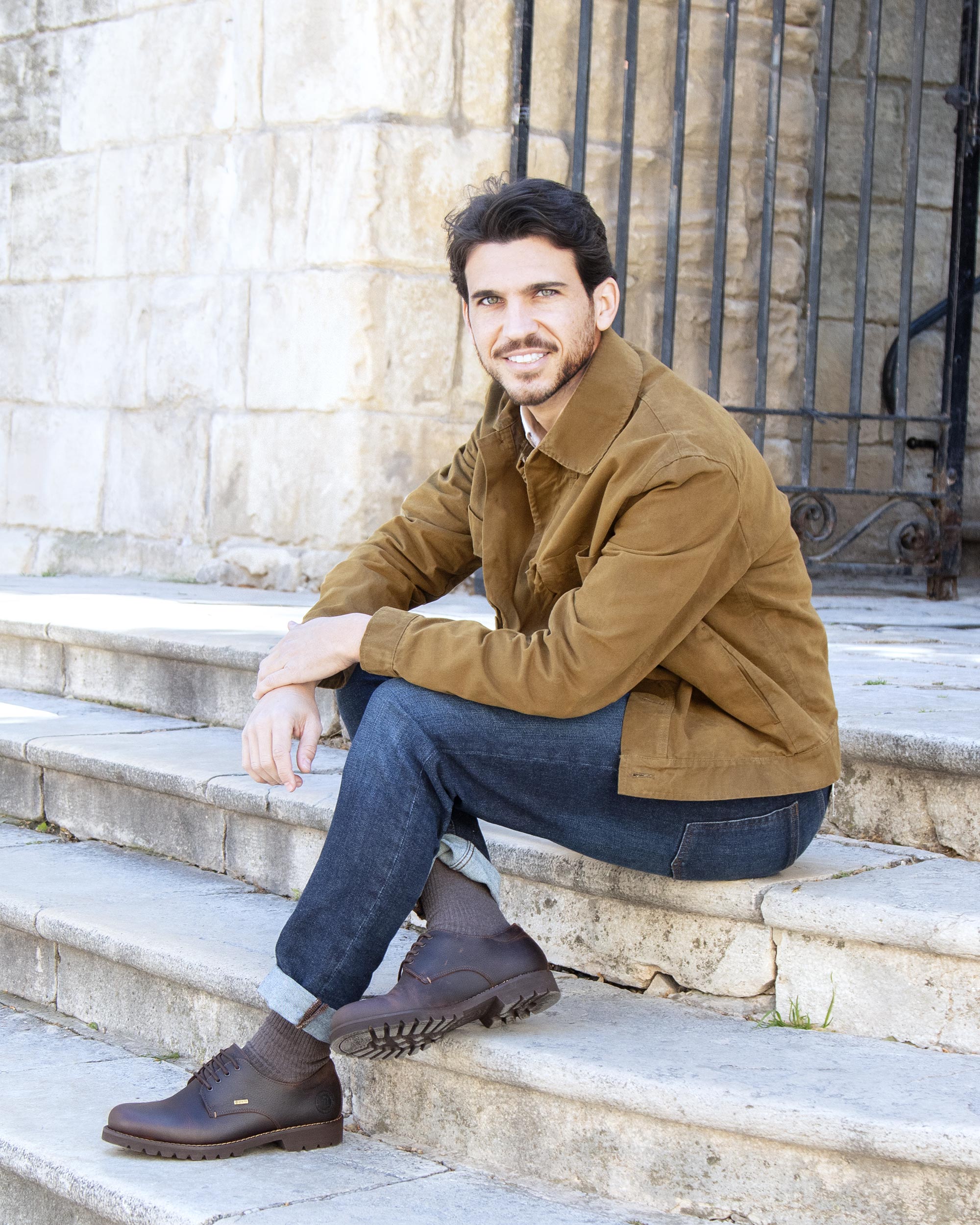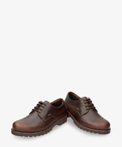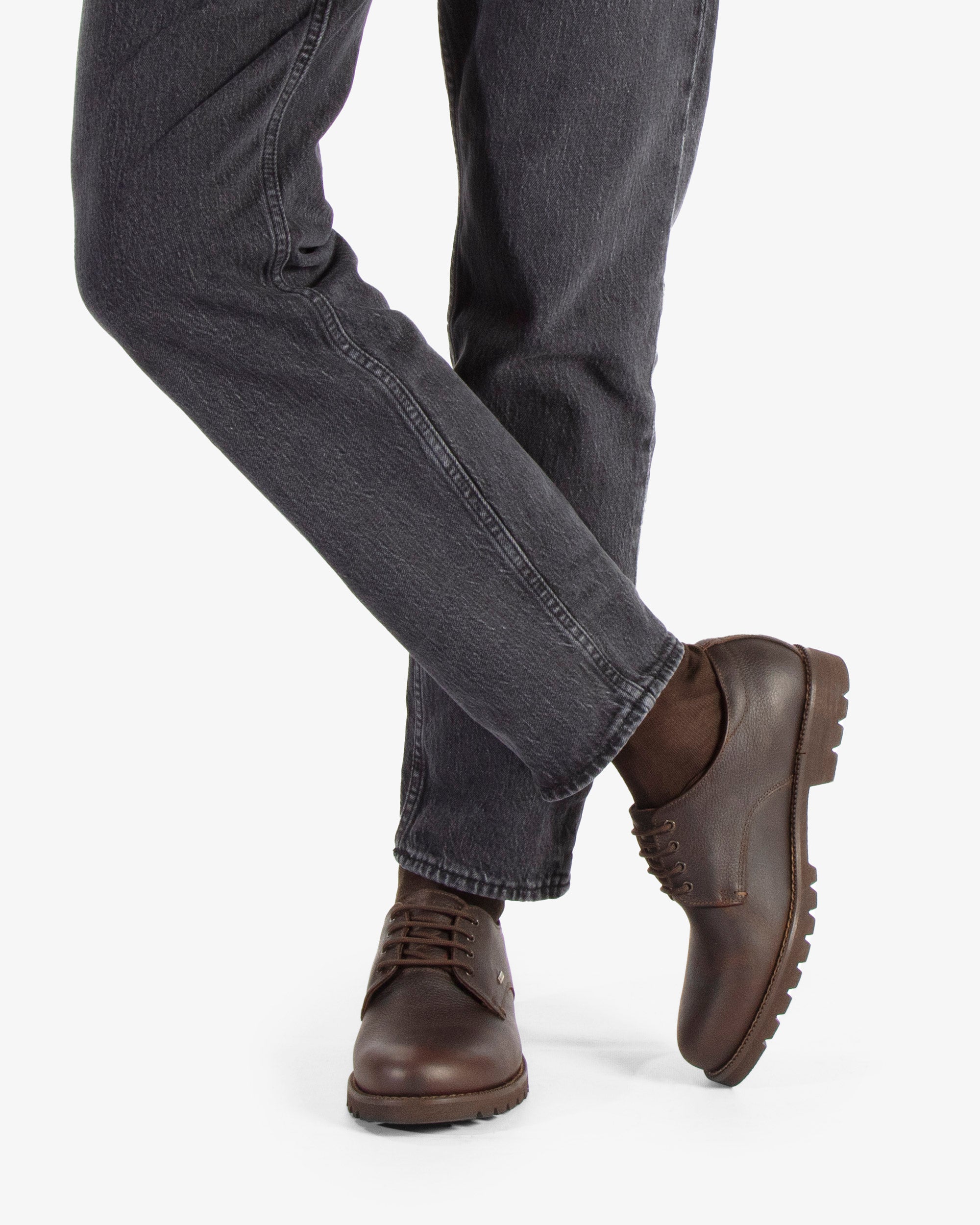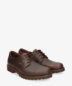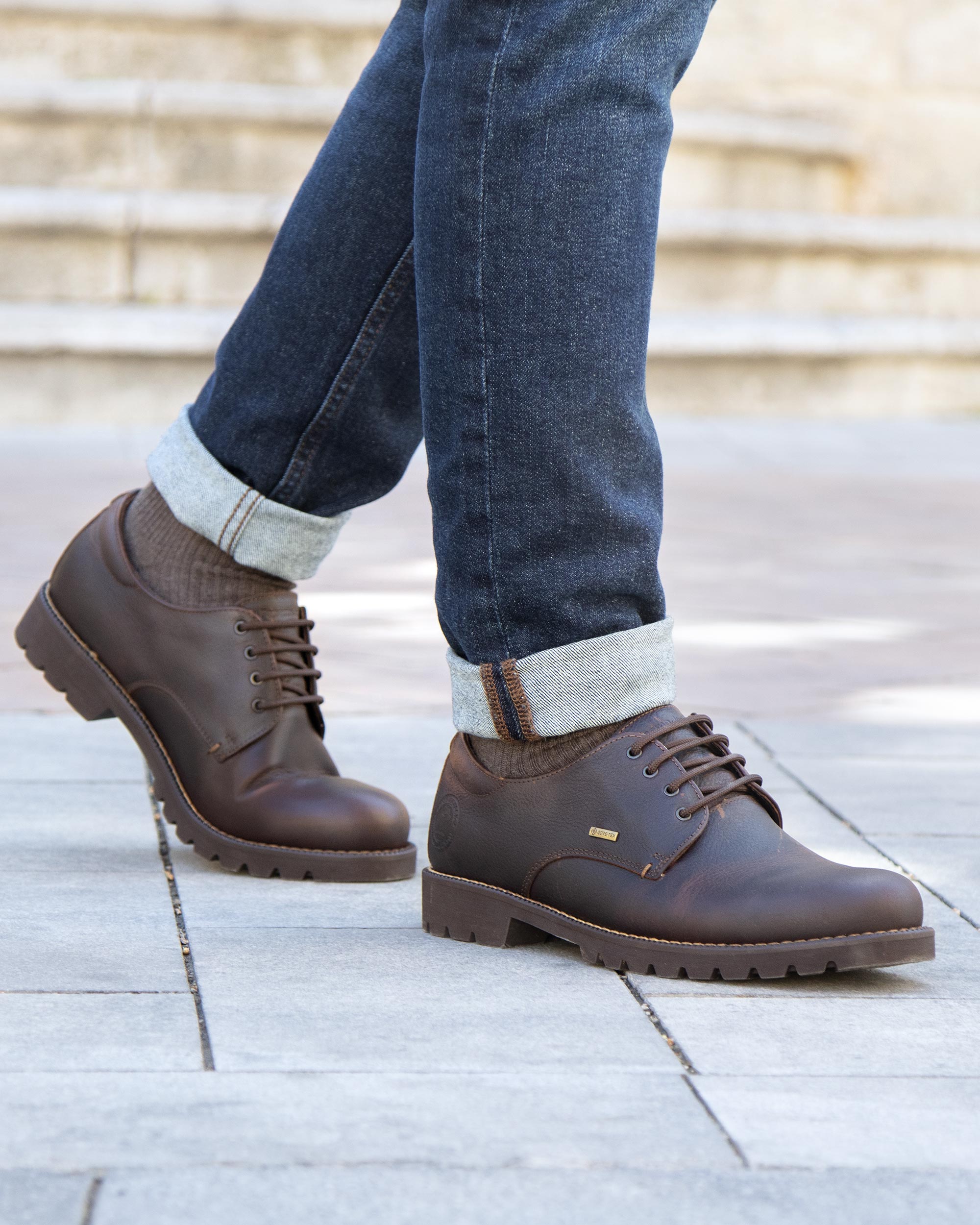 Zapato de hombre. Piel Napa Grass Castaño WATERPROOF. Cierre de cordones. Forro interior de Gore-Tex®. Plantilla anatómica extraíble. Suela de caucho natural, flexible y resistente. Altura tacón: 4 cm. 100% Hecho en España.