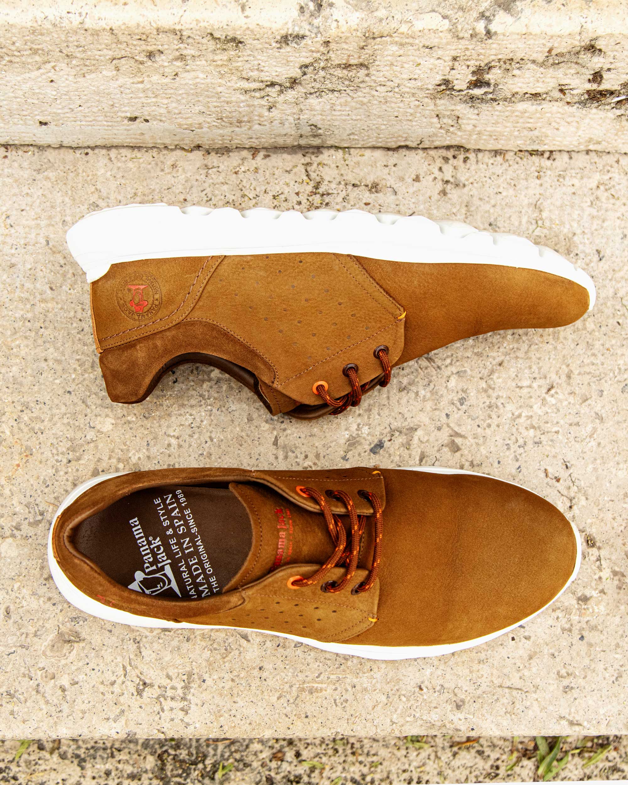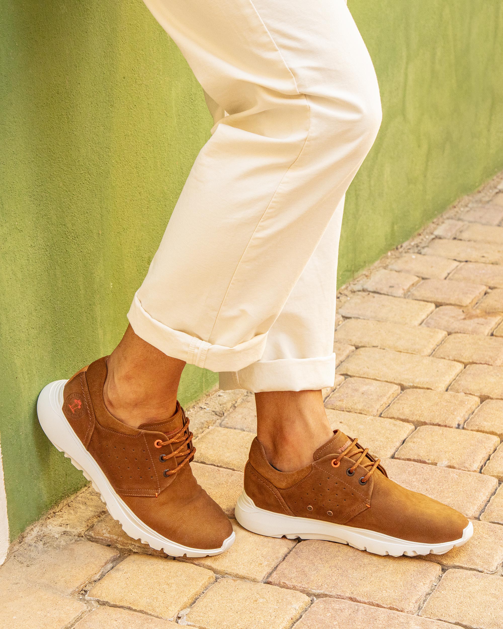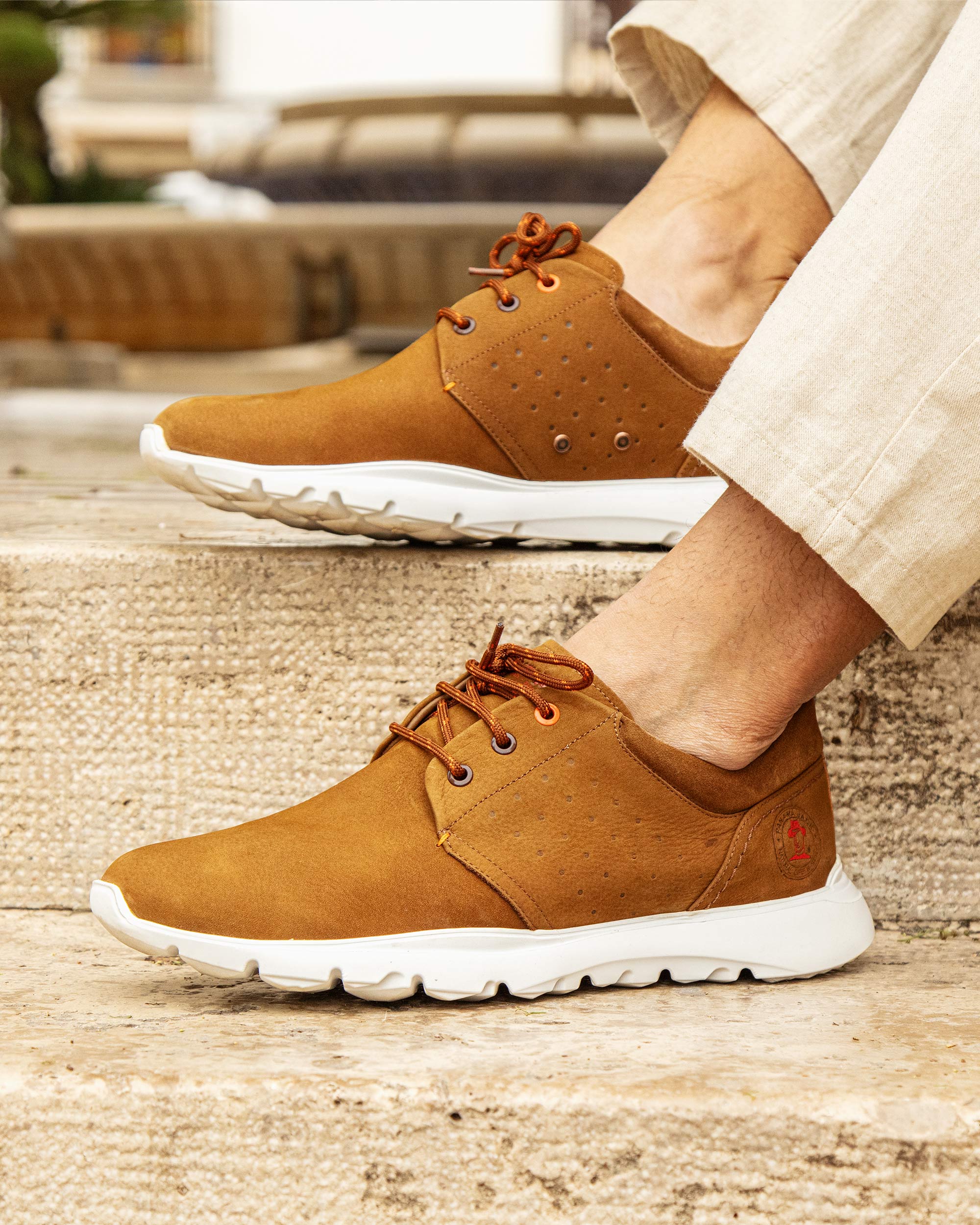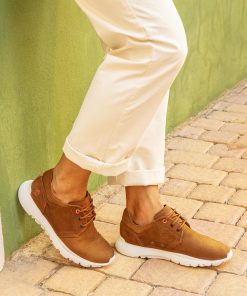 Sneakers de hombre. Piel Nobuck Cuero WATERPROOF. Cierre de cordones. Forro interior de Piel. Plantilla anatómica extraíble. Suela de EVA, ligero, flexible y resistente. Altura tacón: 5 cm. 100% Hecho en España.