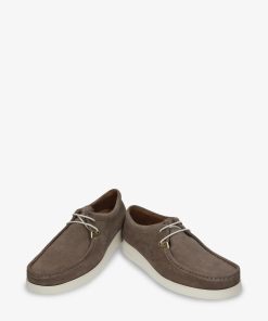 Zapato de hombre. Piel Velour Piedra WATERPROOF. Cierre de cordones. Forro interior de Piel. Plantilla anatómica extraíble. Suela de poliuretano, flexible y resistente. Altura caña: 7 cm. Altura tacón: 4.3 cm. 100% Hecho en España.