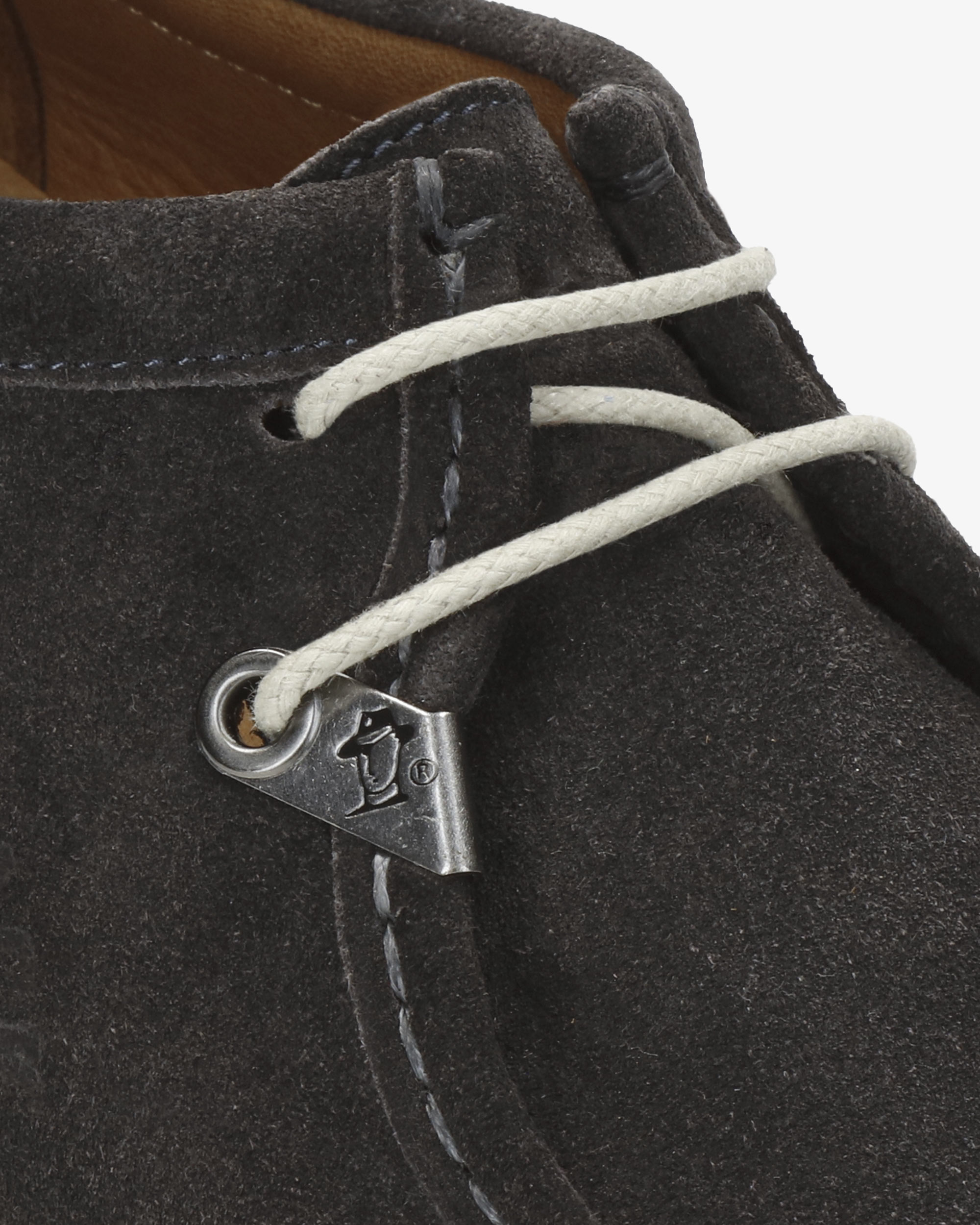 Zapato de hombre. Piel Velour Gris. Cierre de cordones. Forro interior de Piel. Plantilla anatómica extraíble. Suela de poliuretano, flexible y resistente. Altura caña: 7 cm. Altura tacón: 4.3 cm. 100% Hecho en España.