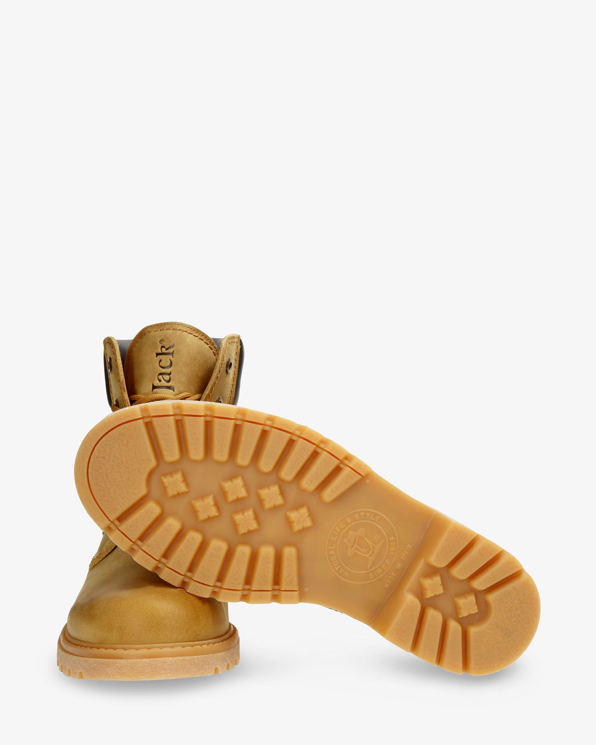 Bota de hombre. Piel Napa Vintage WATERPROOF. Cierre de cordones. Forro interior de Gore-Tex®. Plantilla anatómica extraíble. Suela de caucho natural, flexible y resistente. Altura caña: 16 cm. Altura tacón: 4.5 cm. 100% Hecho en España.