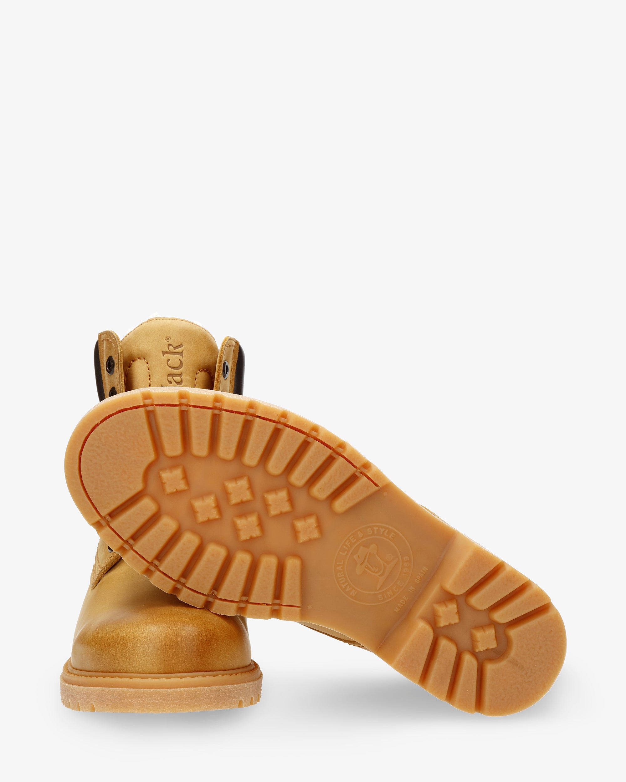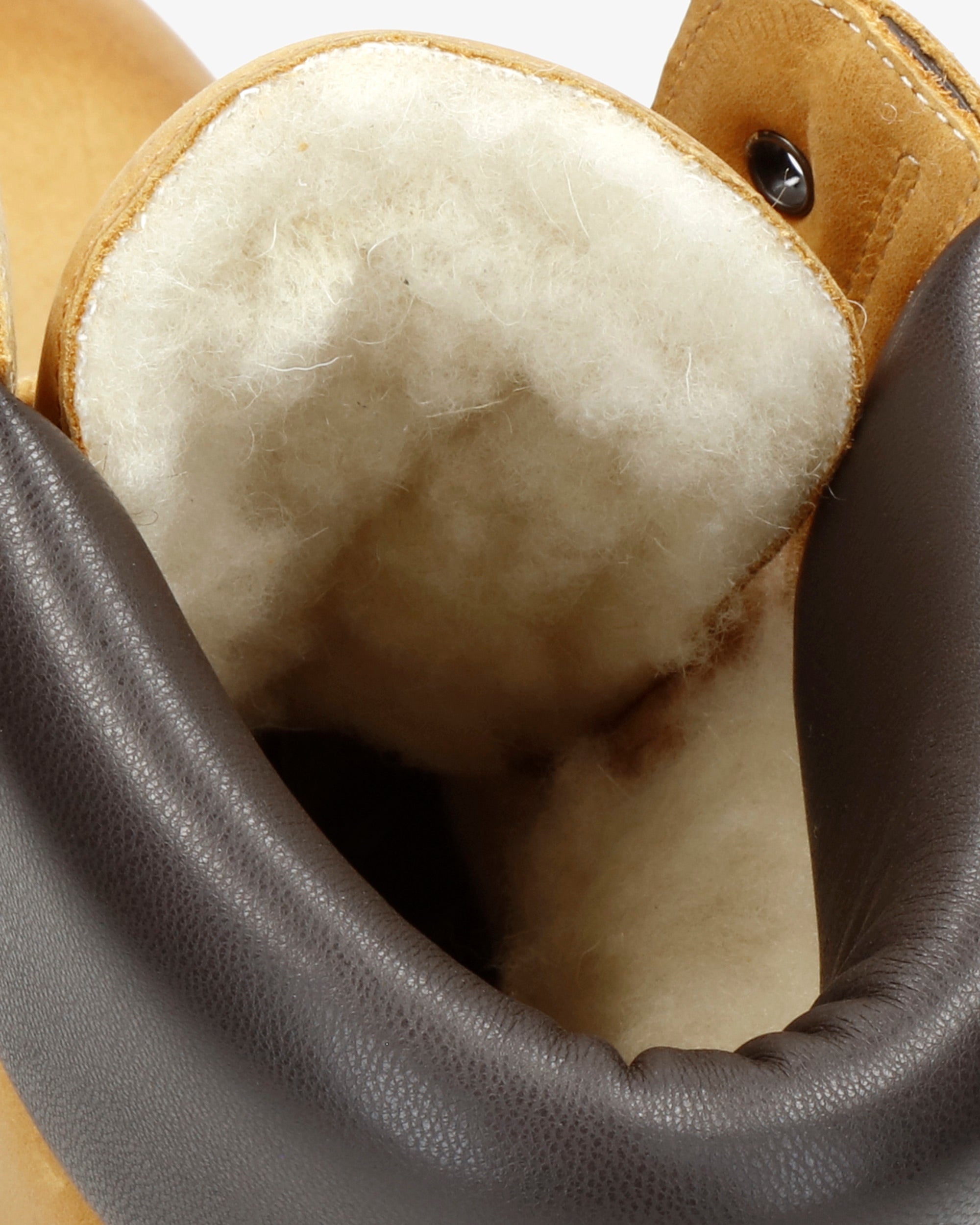 Bota de hombre. Piel Napa Vintage WATERPROOF. Cierre de cordones. Forro interior de Lana. Plantilla anatómica extraíble. Suela de caucho natural, flexible y resistente. Altura caña: 15,5 cm. Altura tacón: 4.5 cm. 100% Hecho en España.