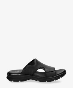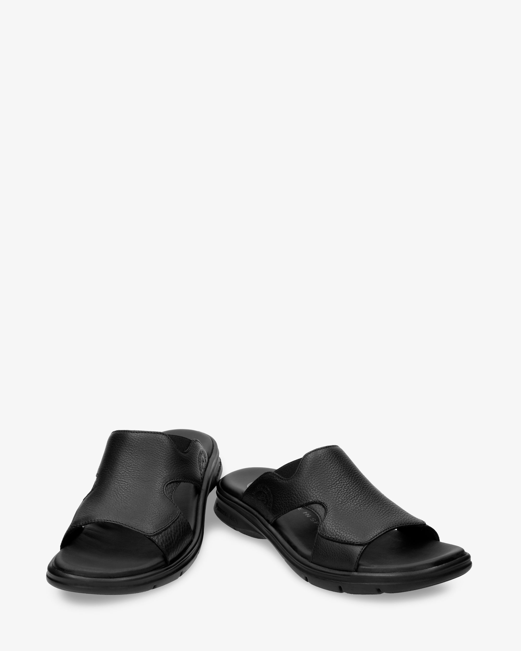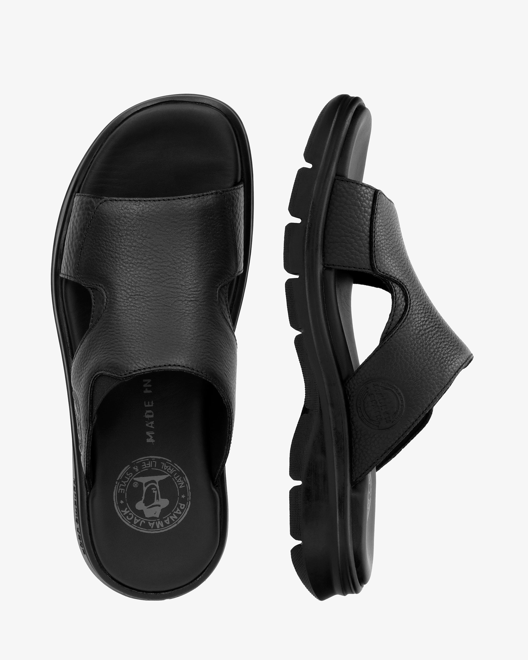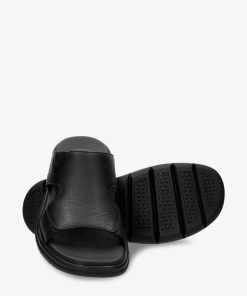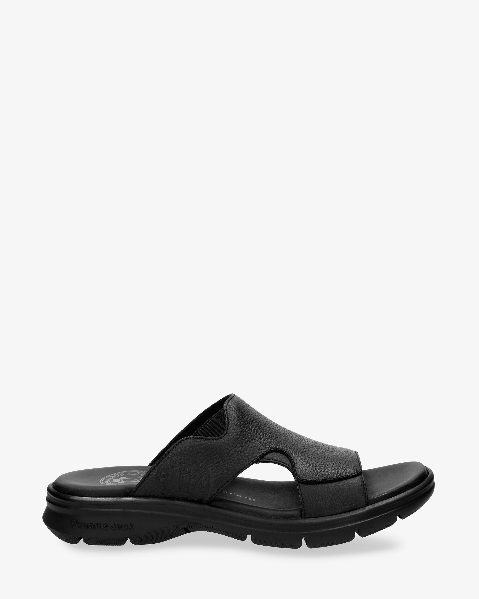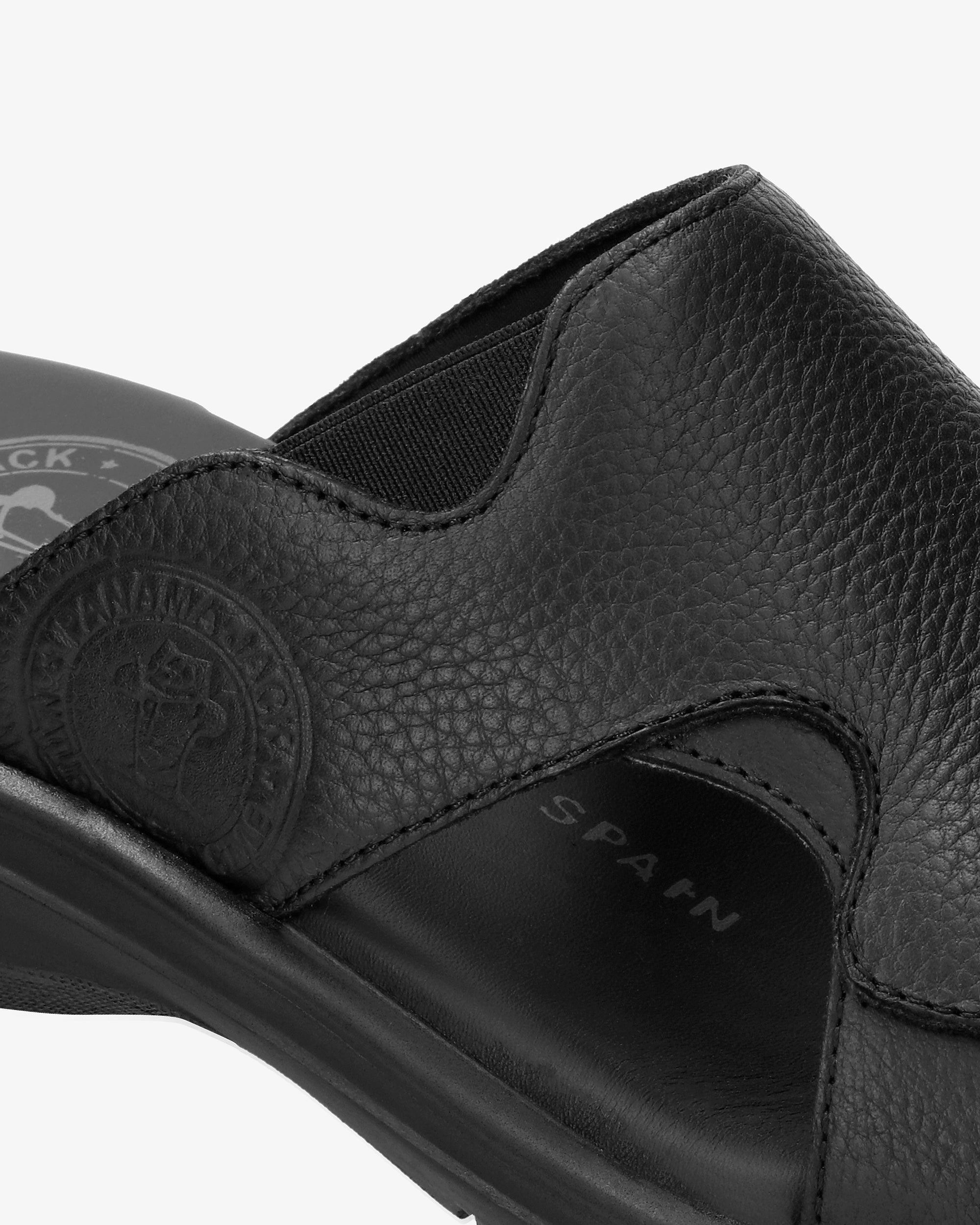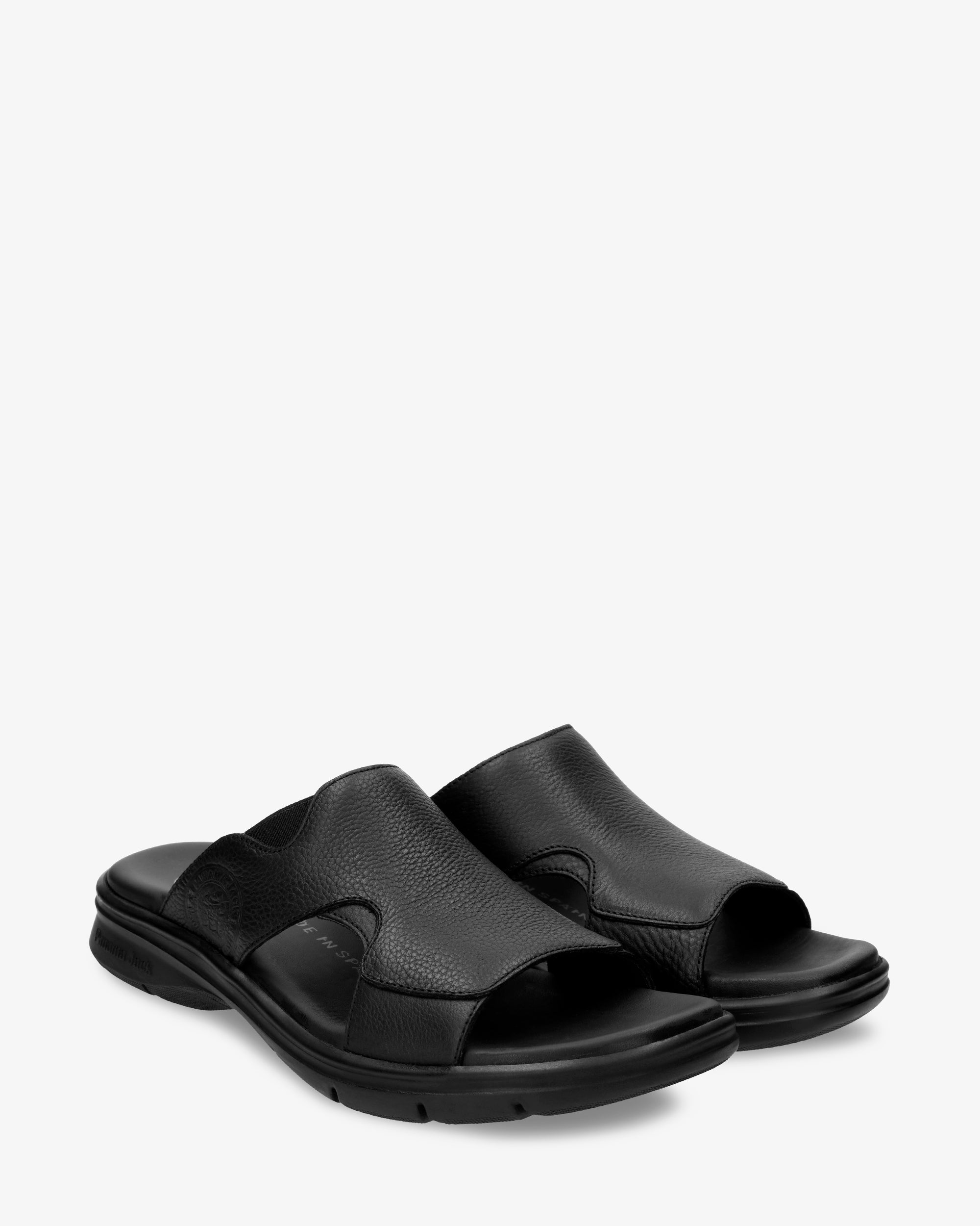 Sandalia de hombre. Piel Napa Grass Negro WATERPROOF. Forro interior de Lycra. Plantilla anatómica. Suela de poliuretano, flexible y resistente. Altura tacón: 5 cm. 100% Hecho en España.