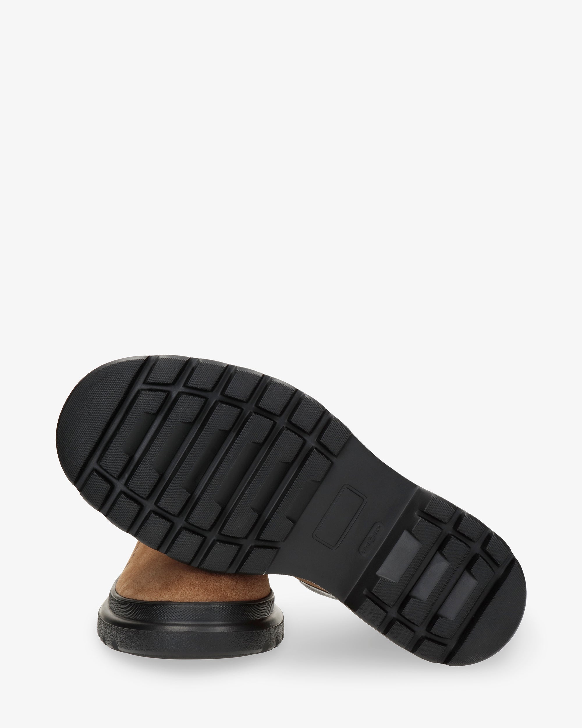 Zueco de hombre. Piel Velour Cuero WATERPROOF. Forro interior de Piel. Plantilla anatómica extraíble. Suela de EVA, ligero, flexible y resistente. Altura tacón: 6 cm. 100% Hecho en España.