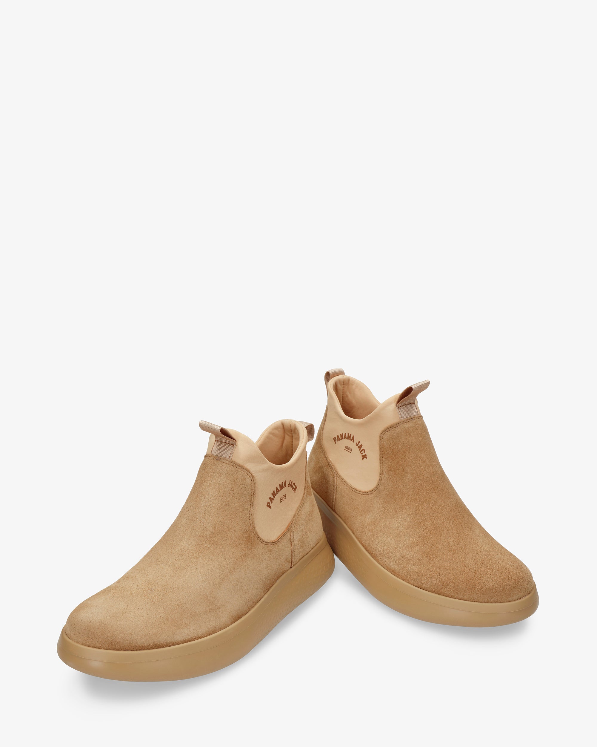 Botín de hombre. Piel Velour Cuero. Forro interior de Lycra. Plantilla anatómica extraíble. Suela de EVA, ligero, flexible y resistente. Altura caña: 8,5 cm. Altura tacón: 4.3 cm. 100% Hecho en España.