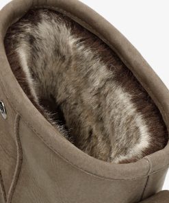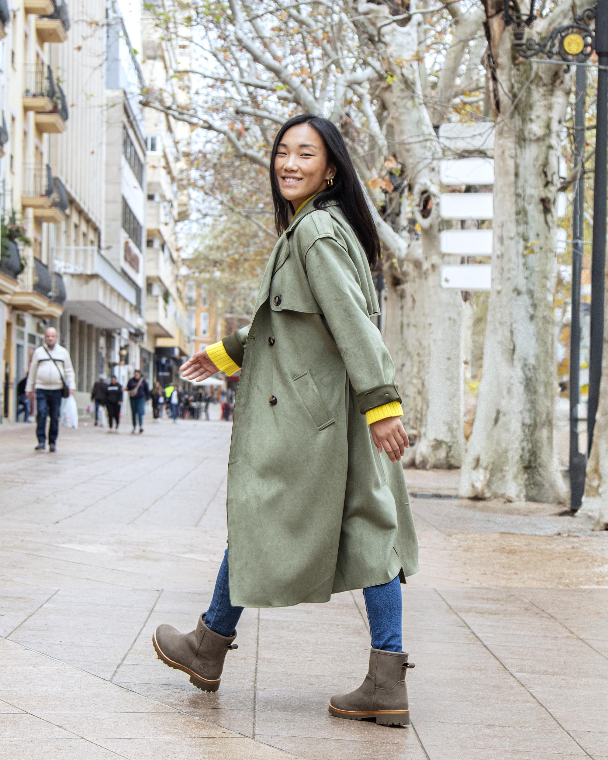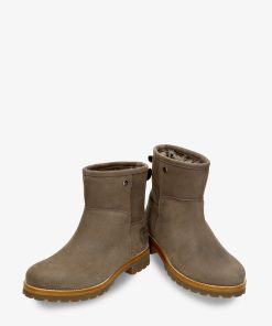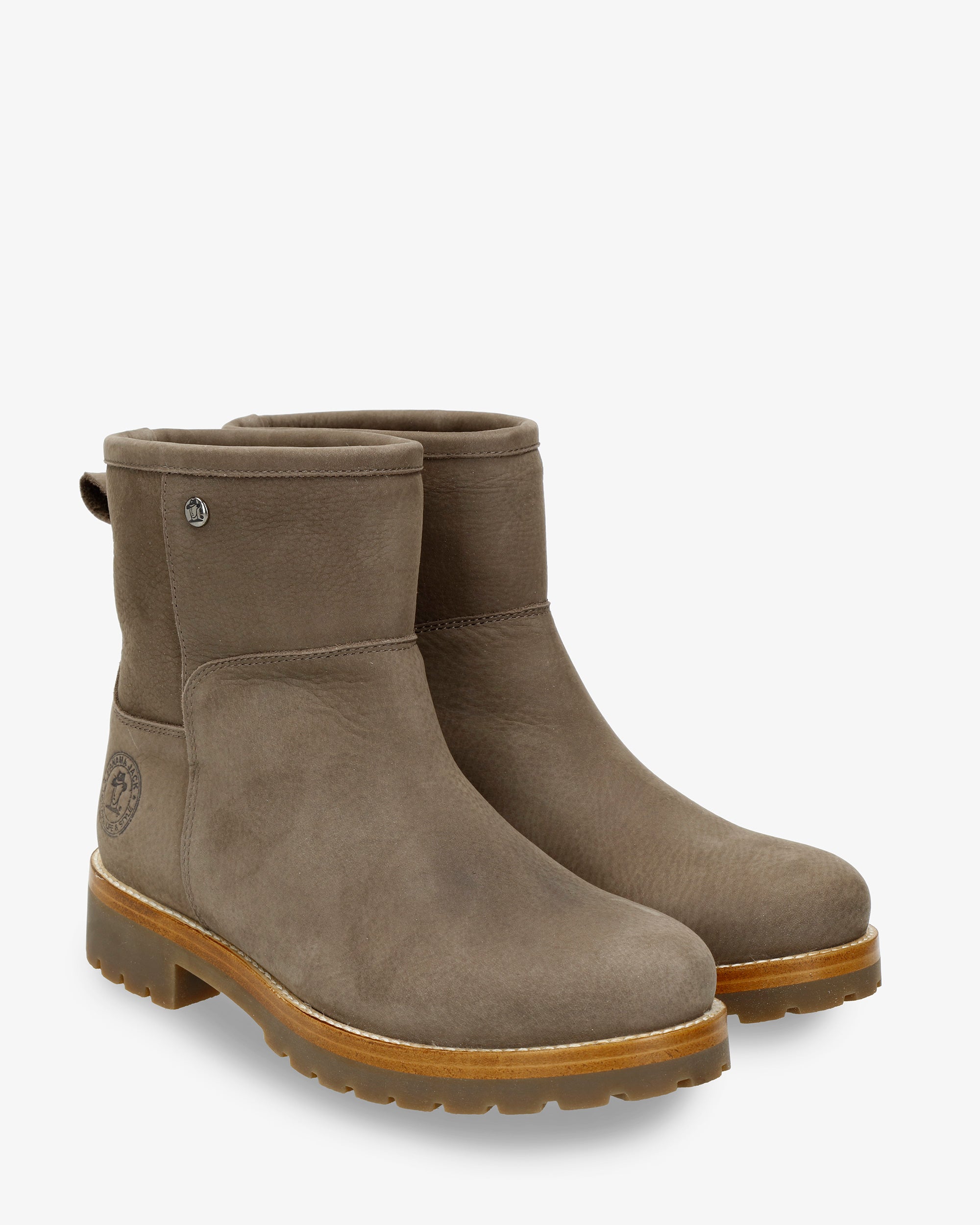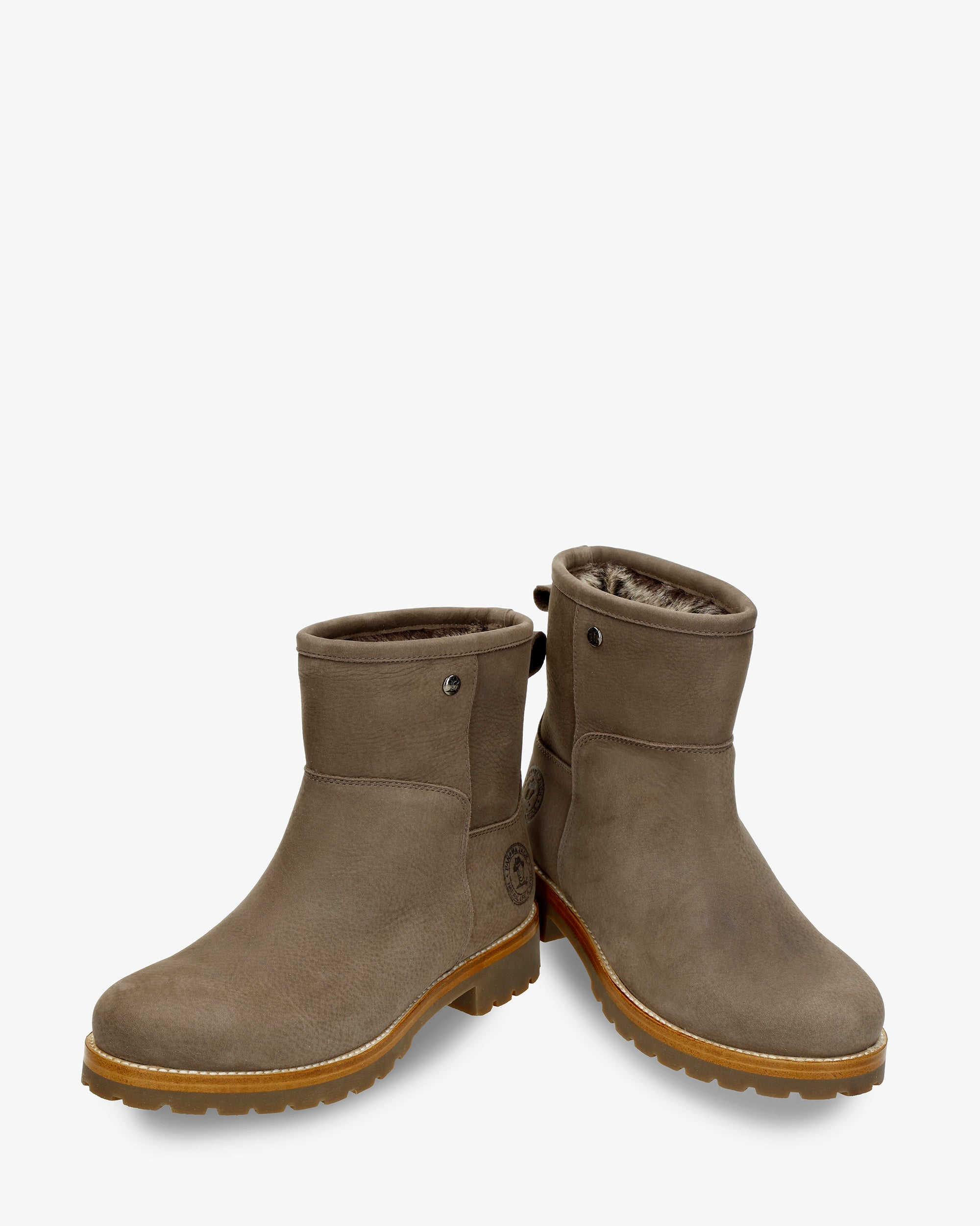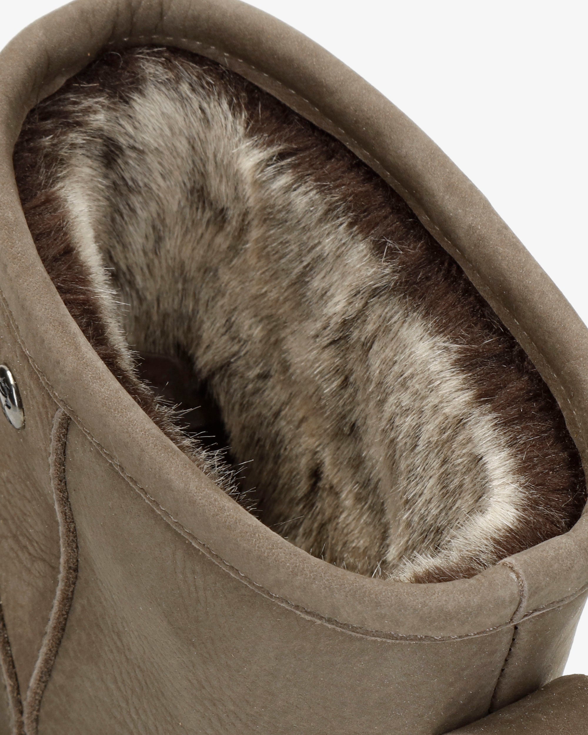Bota de mujer plana. Piel Nobuck Gris WATERPROOF. Forro interior de Pelo. Plantilla anatómica extraíble. Suela de caucho natural, flexible y resistente. Altura caña: 14 cm. Altura tacón: 4 cm. 100% Hecho en España.