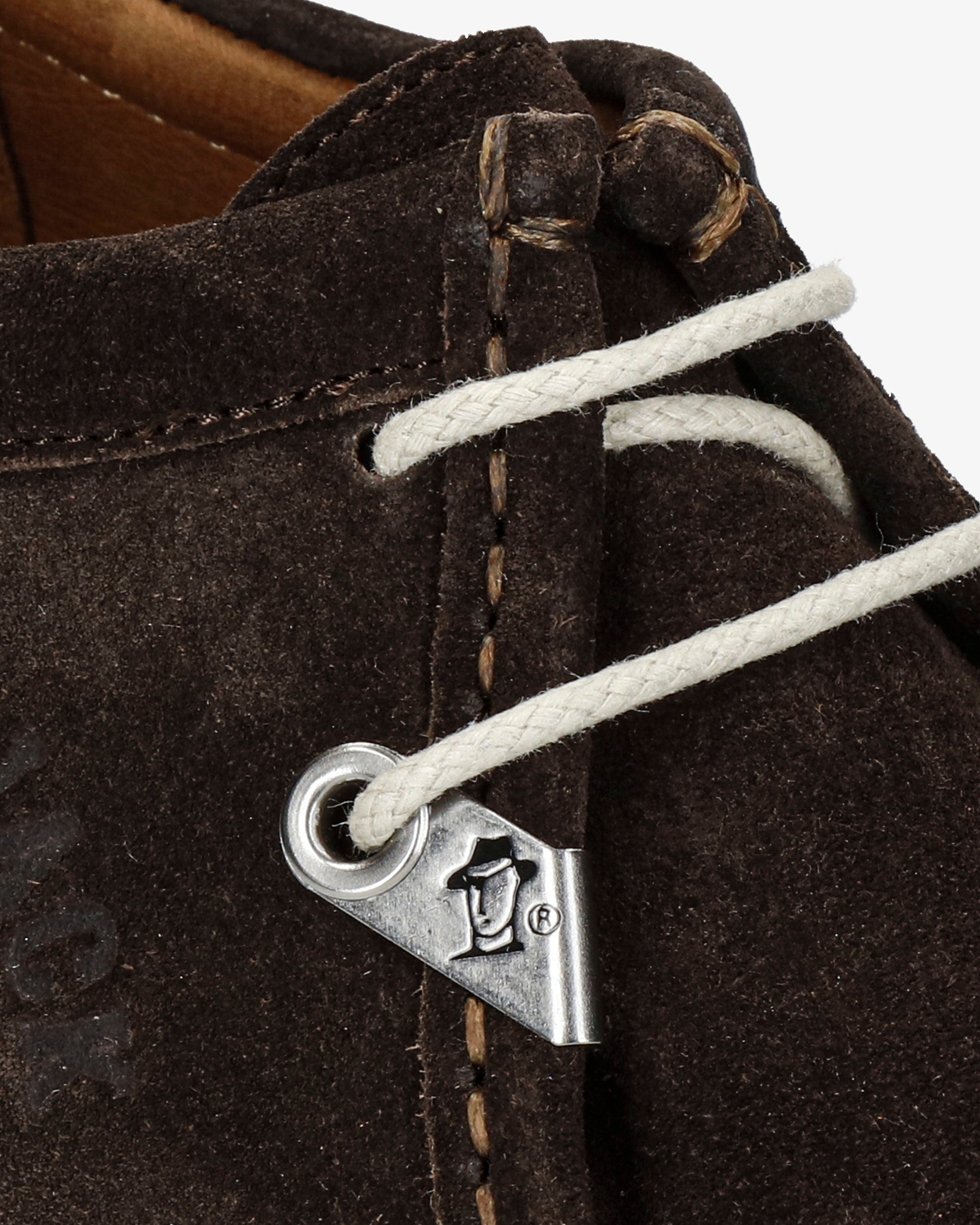 Zapato de mujer. Piel Velour marrón. Cierre de cordones. Forro interior de Piel. Plantilla anatómica extraíble. Suela de poliuretano, flexible y resistente. Altura caña: 10,3 cm. Altura tacón: 4.7 cm. 100% Hecho en España.