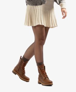 Botín de mujer plano. Piel Nobuck Negro WATERPROOF. Cierre de cordones. Forro interior de Piel. Plantilla anatómica extraíble. Suela de goma, flexible y resistente. Altura caña: 10 cm. Altura tacón: 5 cm. 100% Hecho en España.