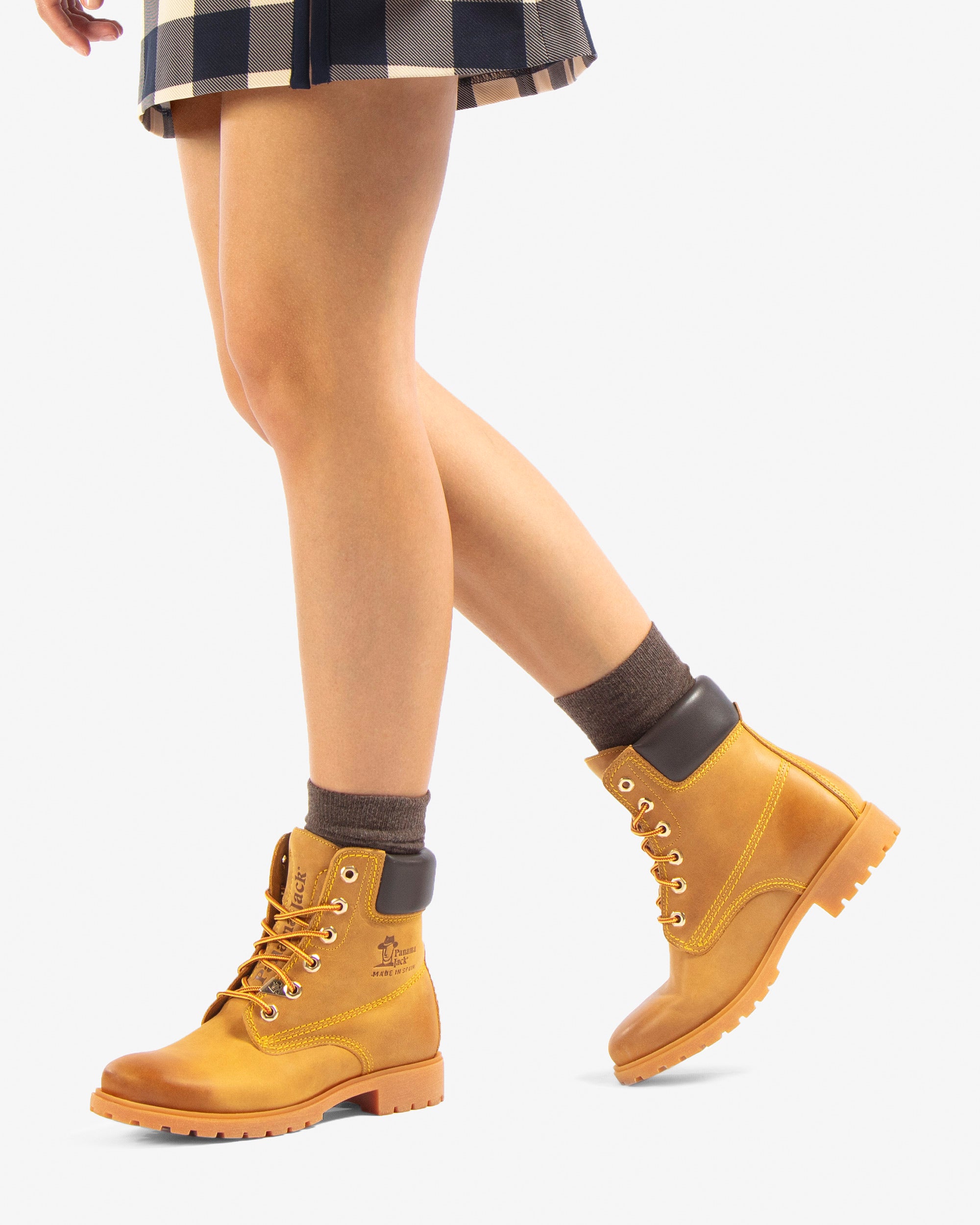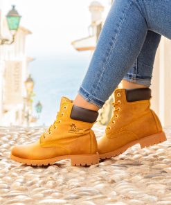 Bota de mujer plana. Piel Napa Vintage WATERPROOF. Cierre de cordones. Forro interior de Piel. Plantilla anatómica extraíble. Suela de caucho natural, flexible y resistente. Altura caña: 14 cm. Altura tacón: 4 cm. 100% Hecho en España.