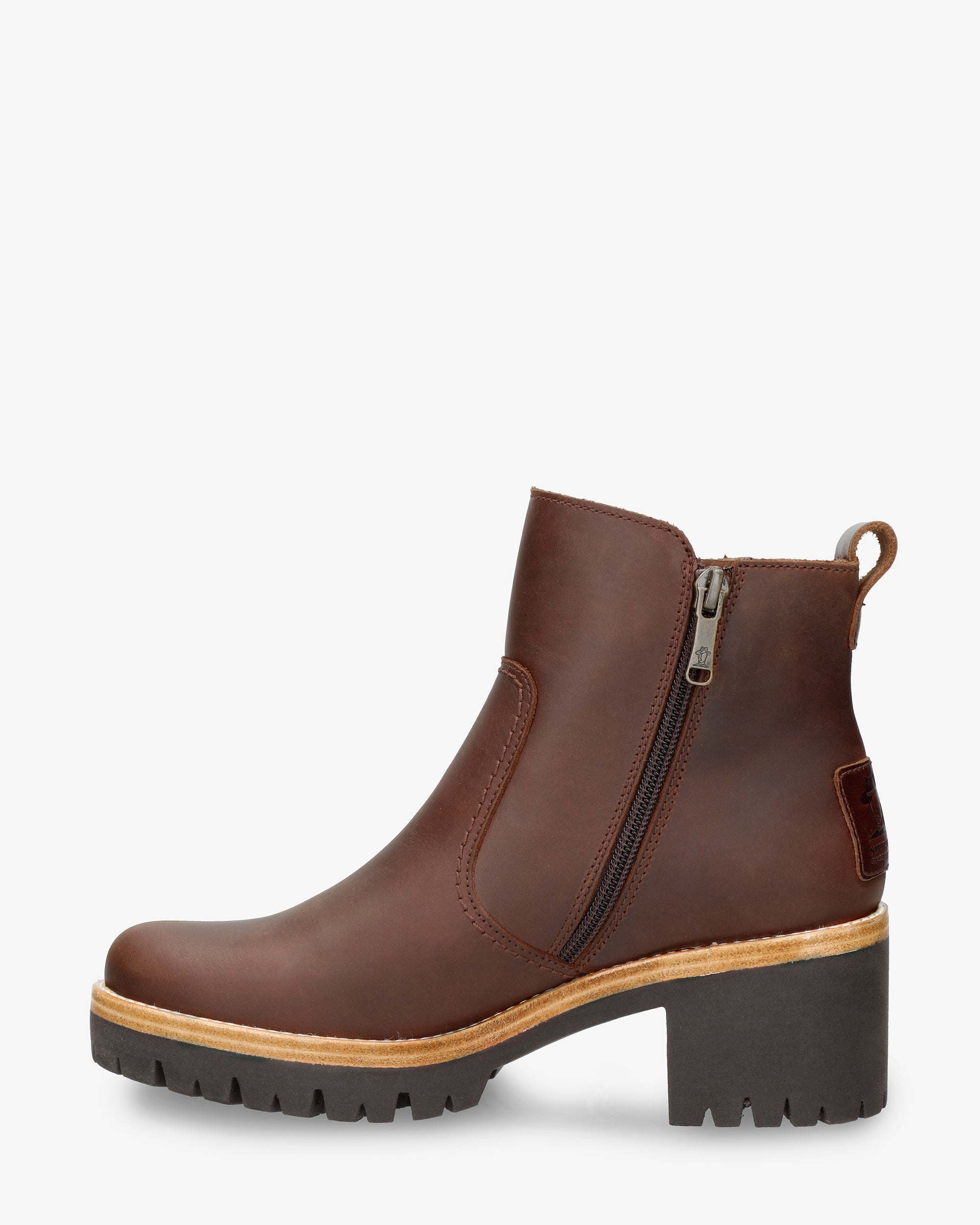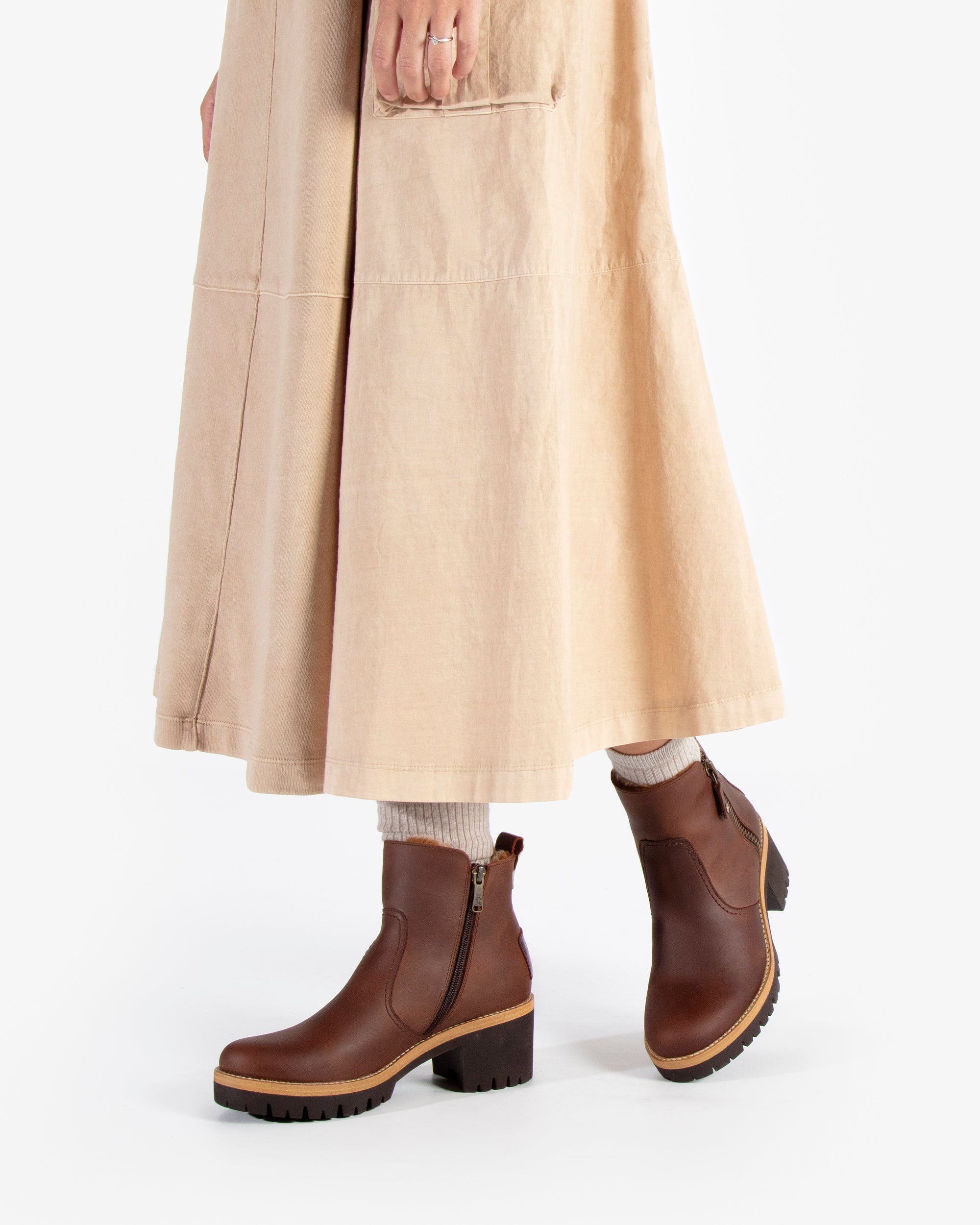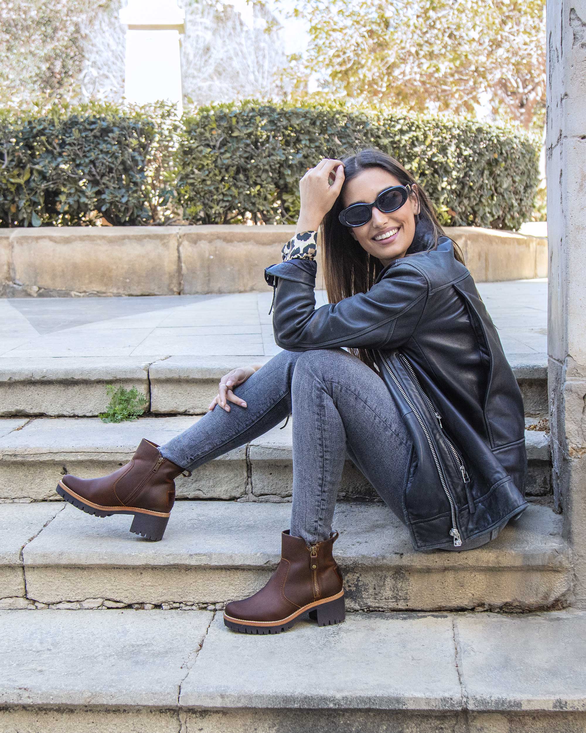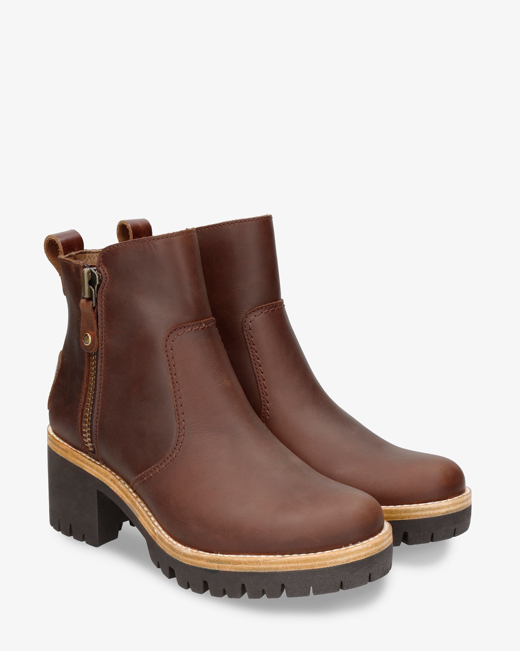 Botín de mujer con tacón. Piel Napa Cuero WATERPROOF. Cierre de cremallera. Forro interior de Piel. Plantilla anatómica extraíble. Suela de TPU, flexible y resistente. Altura caña: 11,5 cm. Altura tacón: 7.5 cm. 100% Hecho en España.
