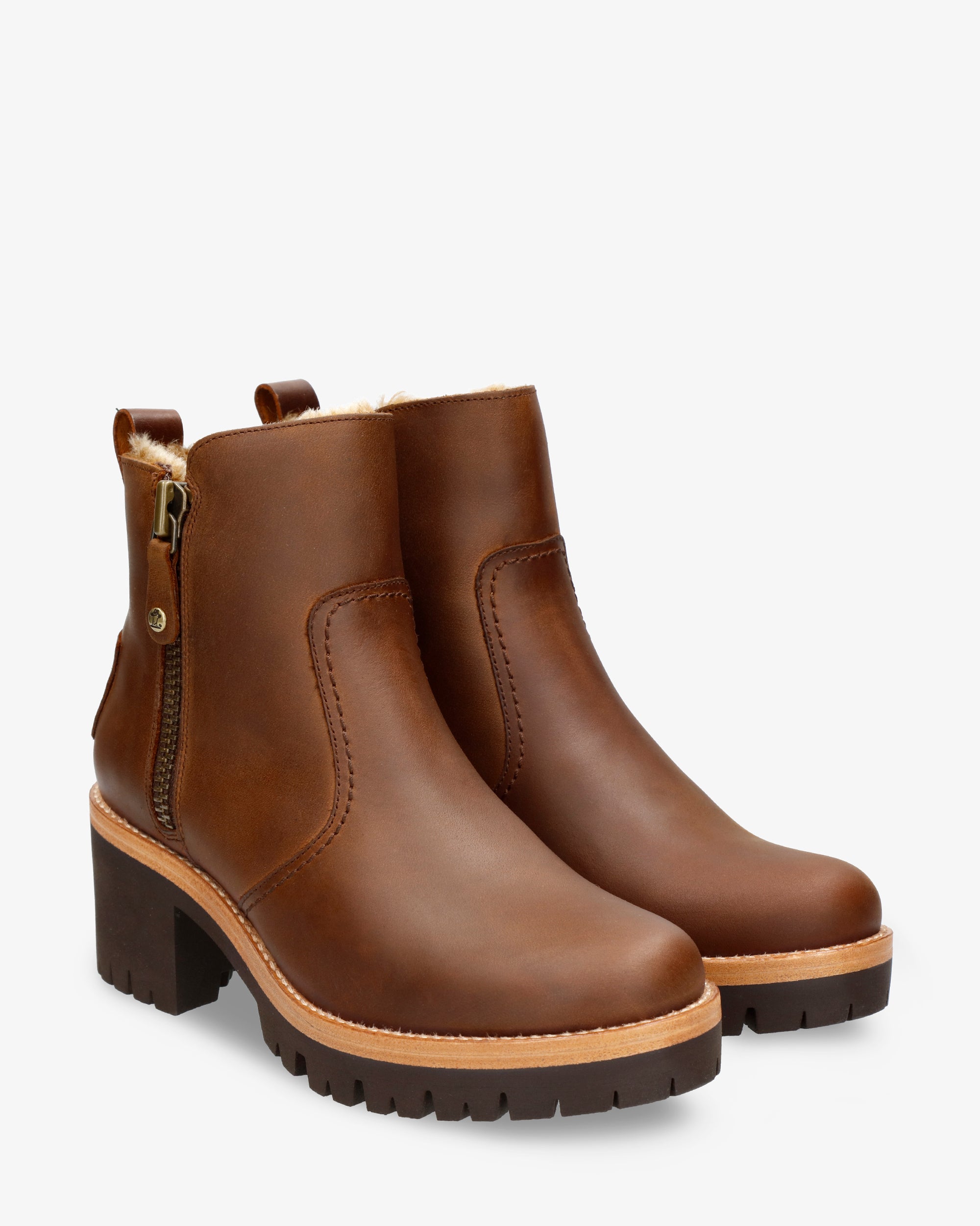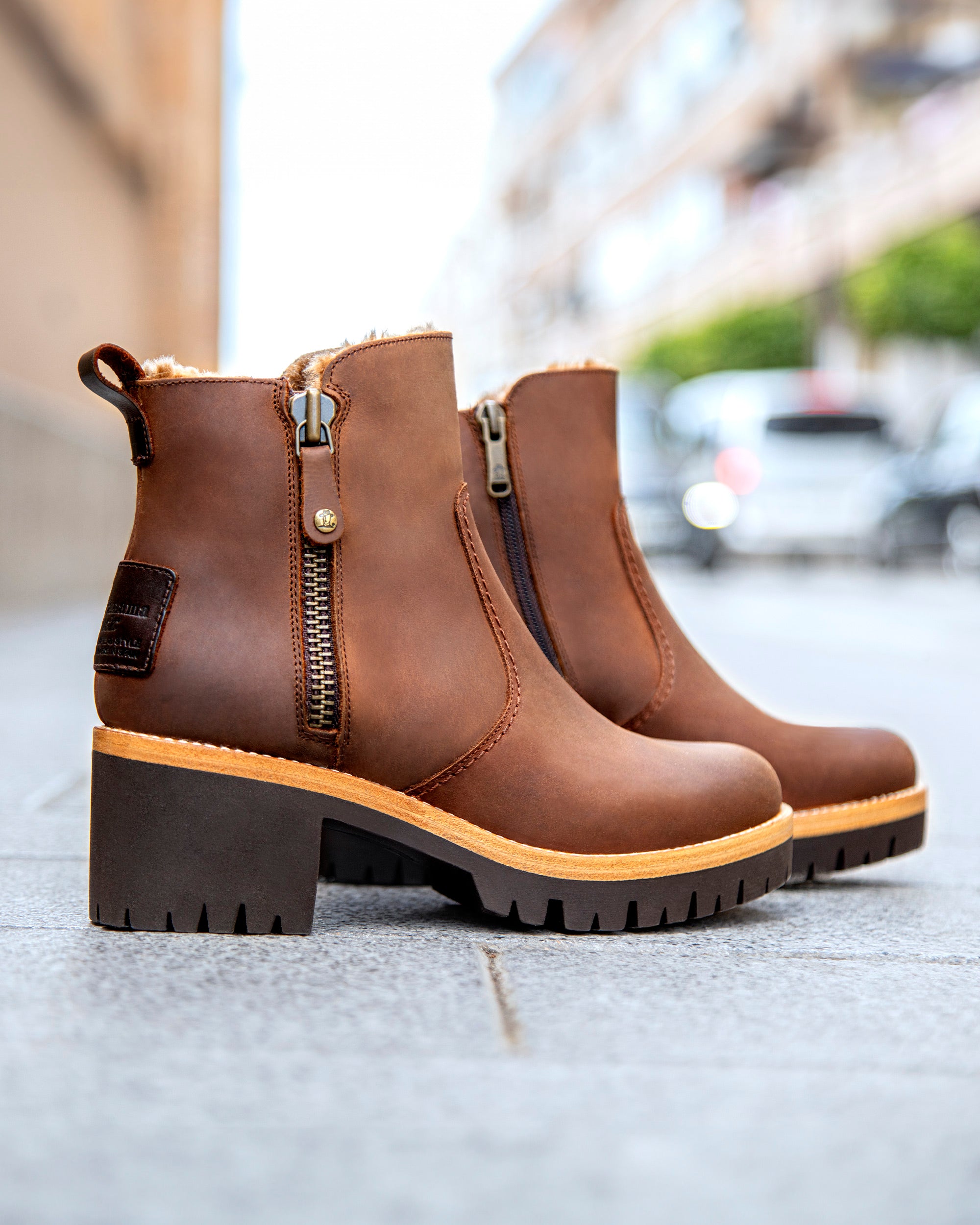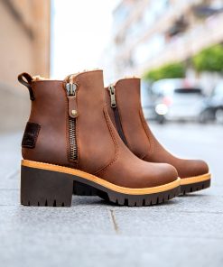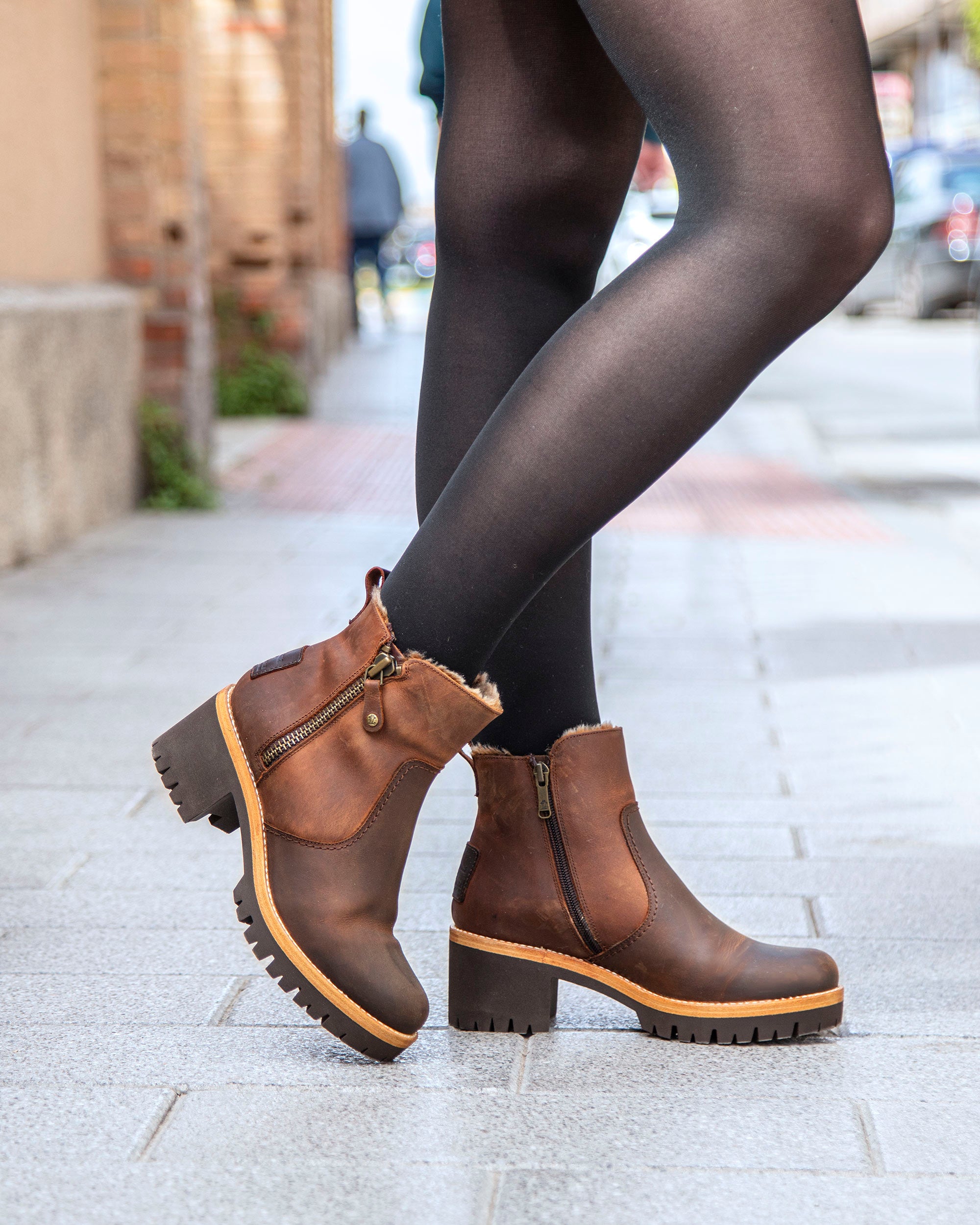 Botín de mujer con tacón. Piel Napa Cuero WATERPROOF. Cierre de cremallera. Forro interior de Pelo. Plantilla anatómica. Suela de TPU, flexible y resistente. Altura caña: 11,5 cm. Altura tacón: 7.5 cm. 100% Hecho en España.