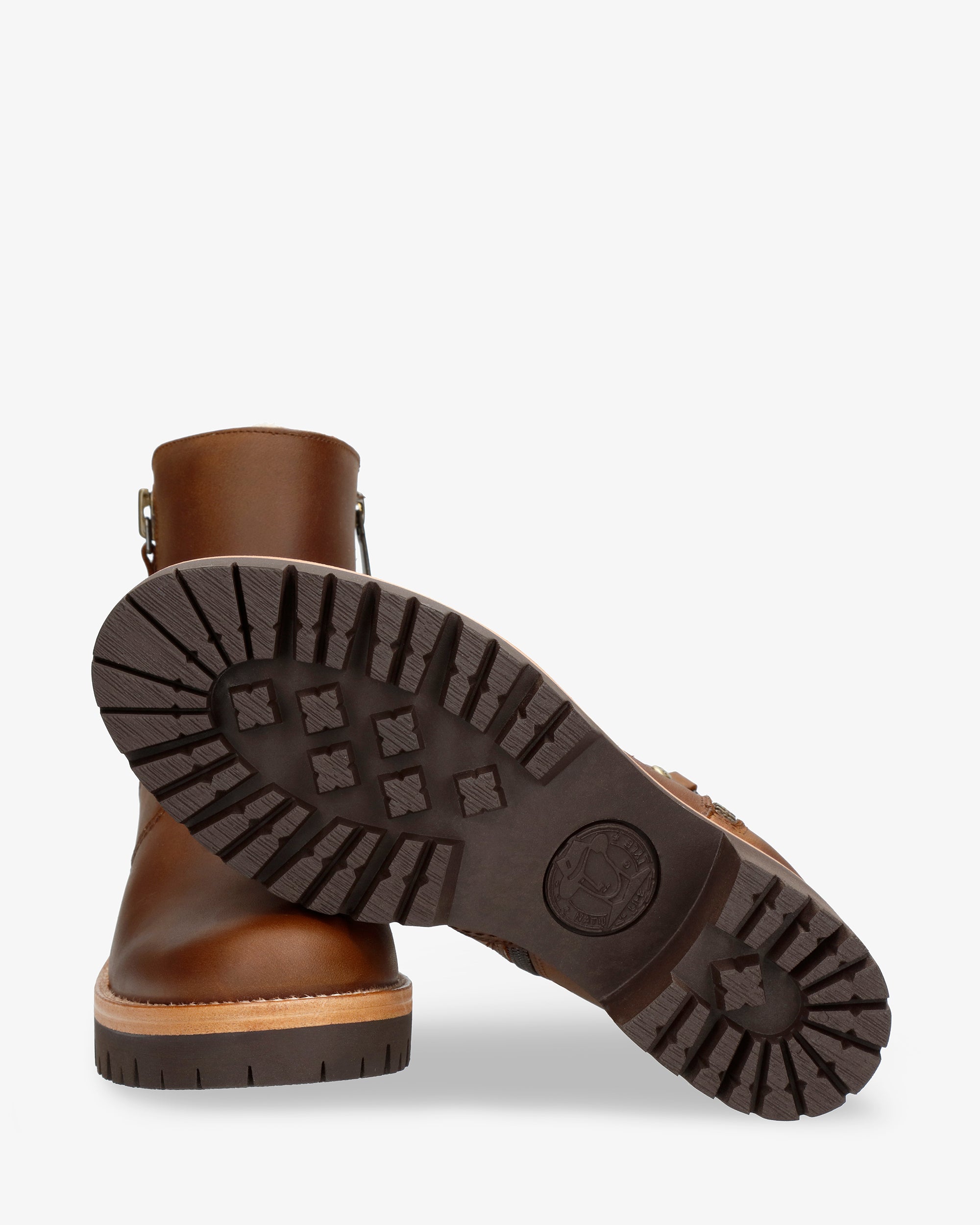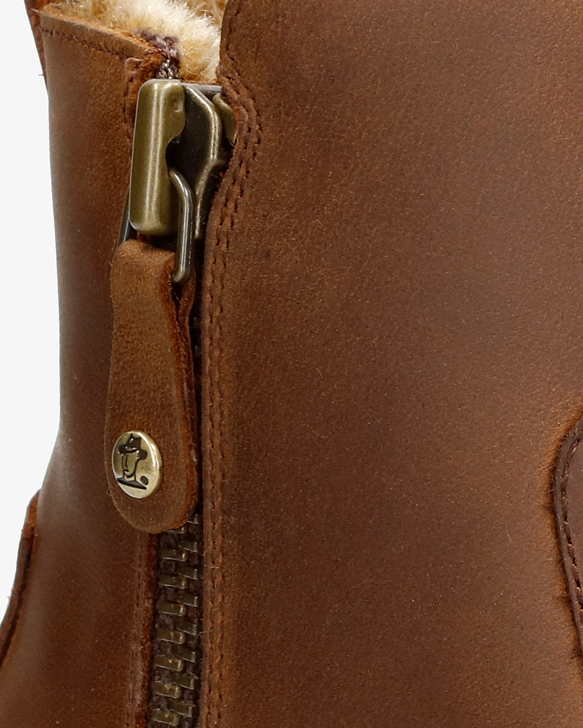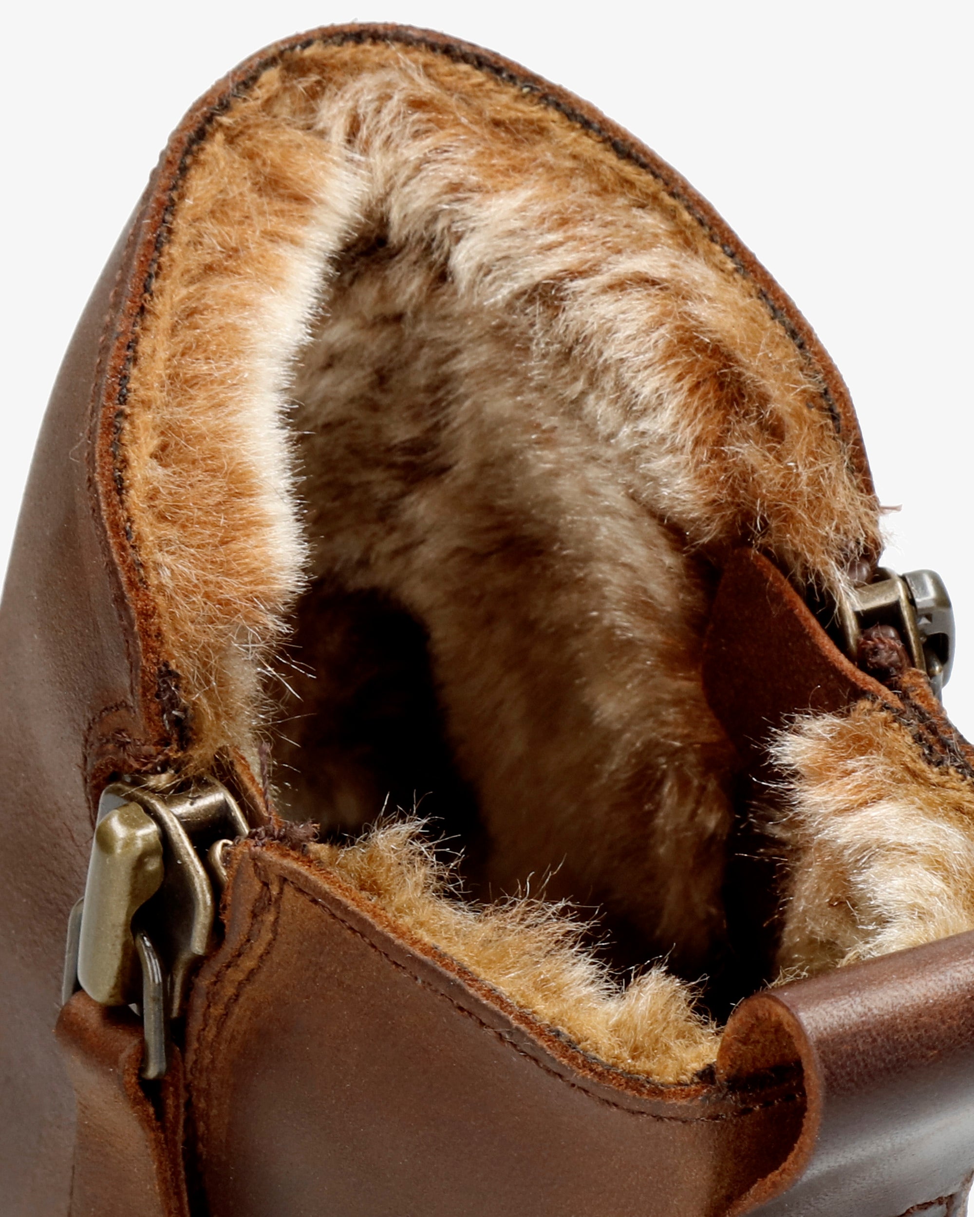 Botín de mujer con tacón. Piel Napa Cuero WATERPROOF. Cierre de cremallera. Forro interior de Pelo. Plantilla anatómica. Suela de TPU, flexible y resistente. Altura caña: 11,5 cm. Altura tacón: 7.5 cm. 100% Hecho en España.