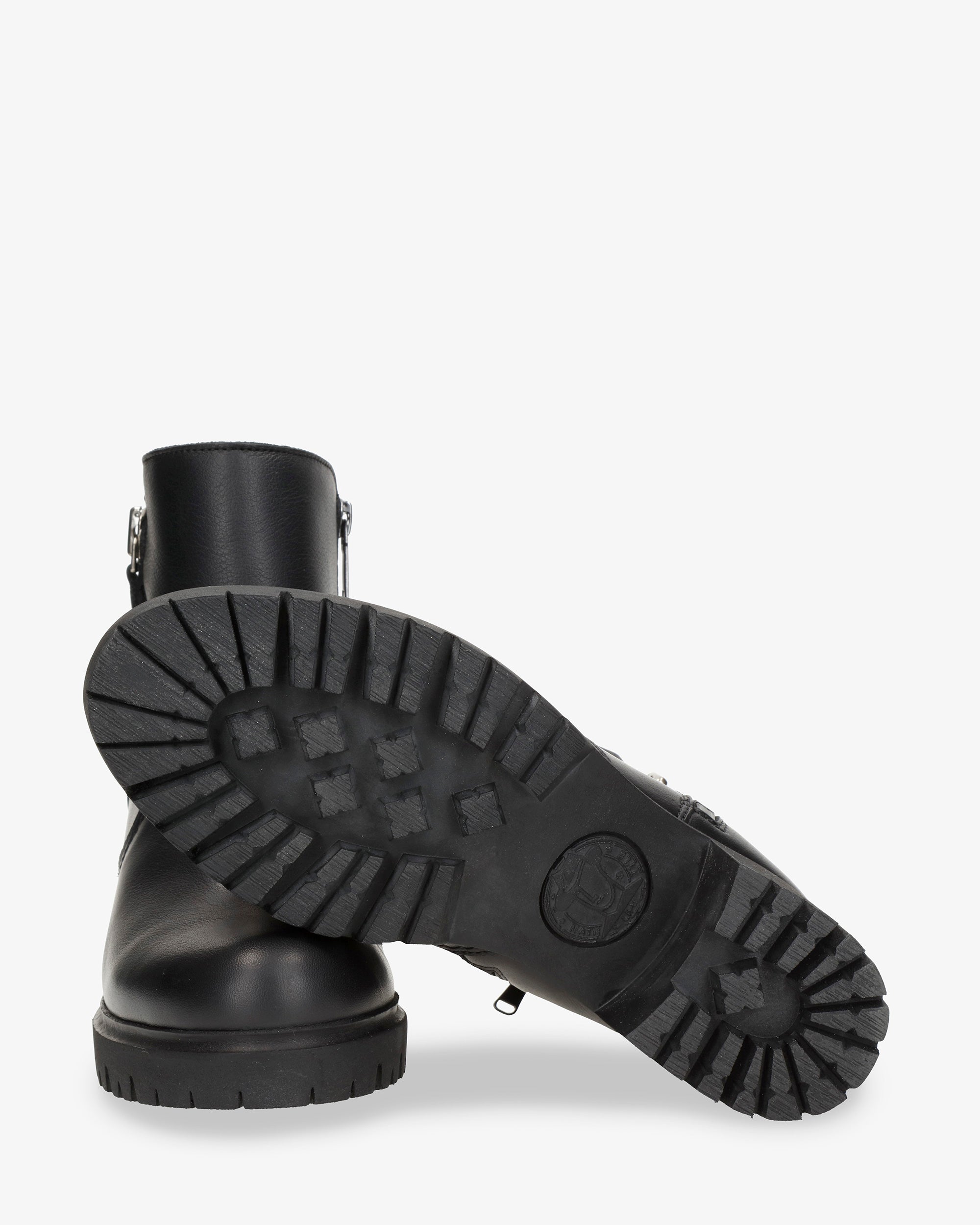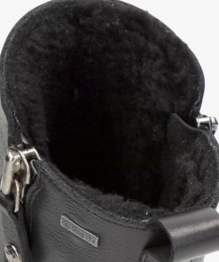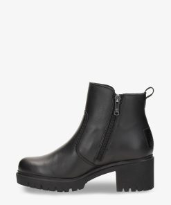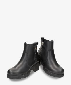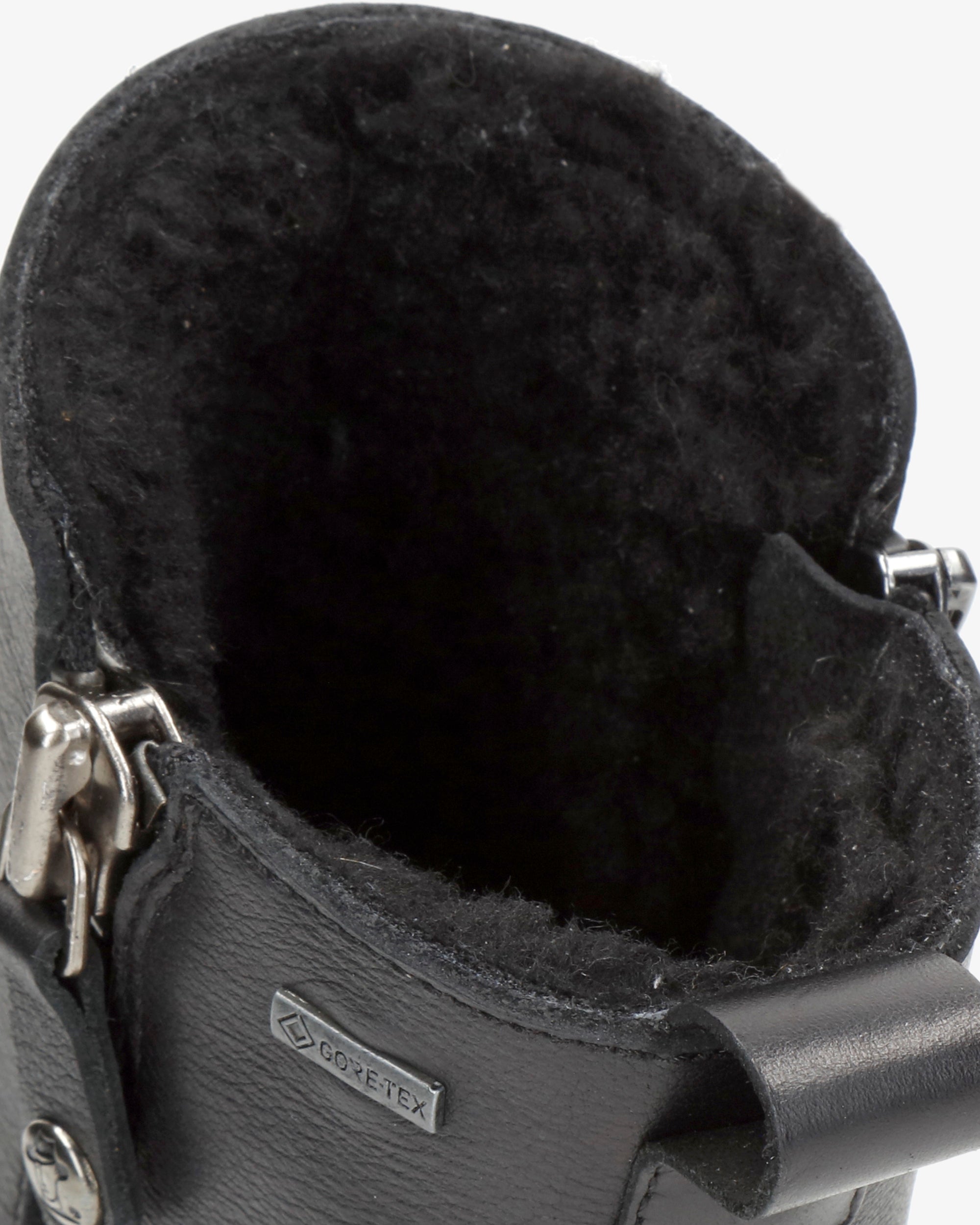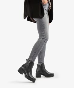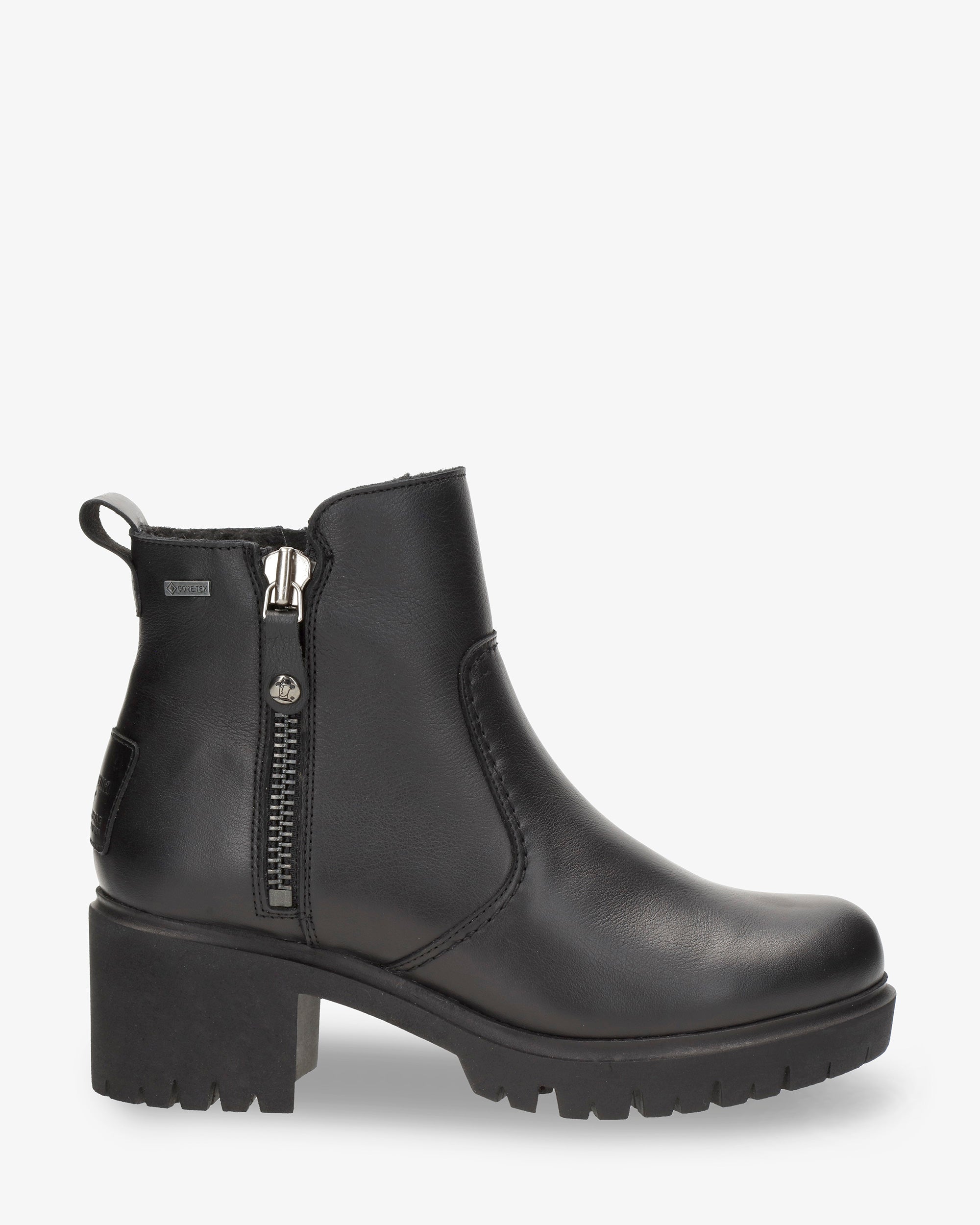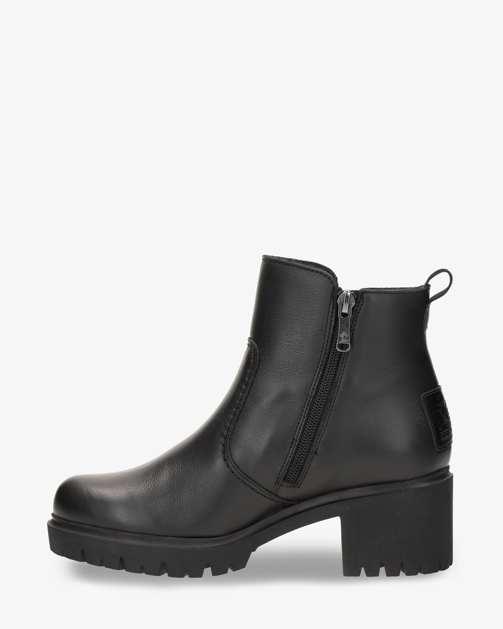 Botín de mujer con tacón. Piel Napa Negro WATERPROOF. Cierre de cremallera. Forro interior de Lana y Gore-Tex®. Plantilla anatómica extraíble. Suela de TPU, flexible y resistente. Altura caña: 11,5 cm. Altura tacón: 7.5 cm. 100% Hecho en España.