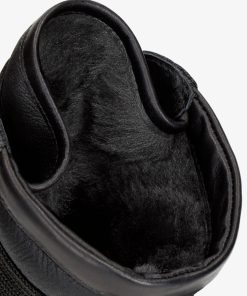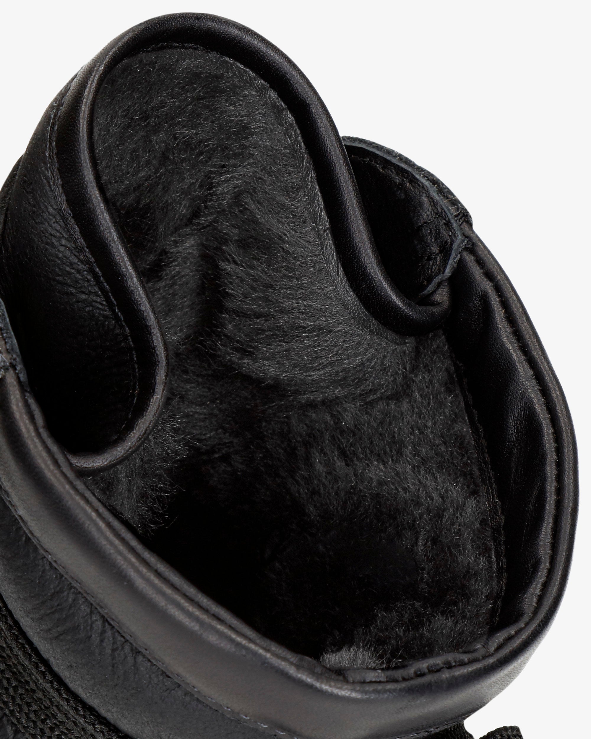 Bota de mujer plana. Piel Napa Negro WATERPROOF. Cierre de cordones. Forro interior de Pelo natural. Plantilla anatómica extraíble. Suela de caucho natural, flexible y resistente. Altura caña: 15 cm. Altura tacón: 4 cm. 100% Hecho en España.