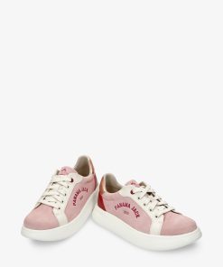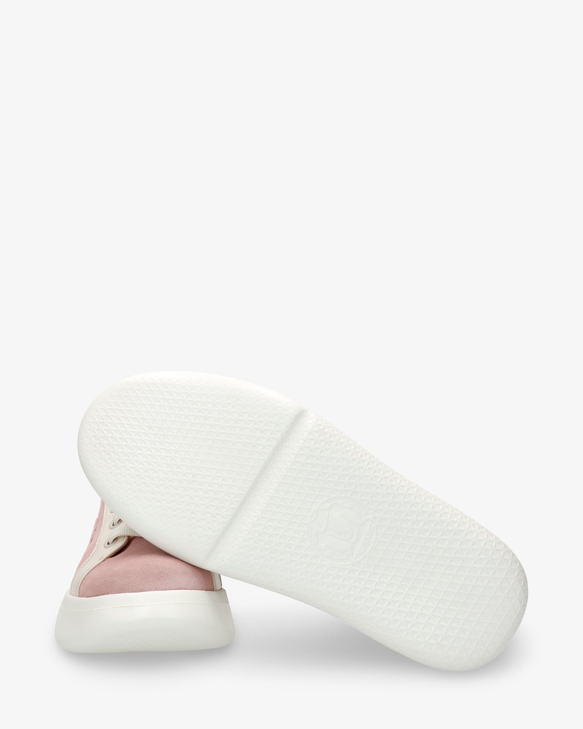 Sneakers de mujer. Piel Velour Rosa. Cierre de cordones. Forro interior de Piel. Plantilla anatómica extraíble. Suela de EVA, ligero, flexible y resistente. Altura tacón: 4.7 cm. 100% Hecho en España.