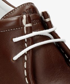Zapato de mujer. Piel Napa Castaño. Cierre de cordones. Forro interior de Piel. Plantilla anatómica extraíble. Suela de EVA, ligero, flexible y resistente. Altura caña: 10,3 cm. Altura tacón: 4.7 cm. 100% Hecho en España.